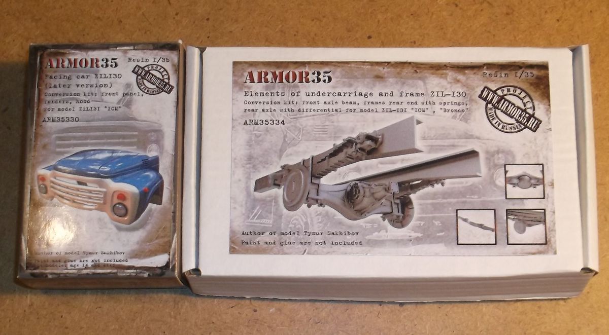 Сегодня получил эти два набора и спешу поделиться радостью! Армор не перестаёт радовать нашего брата-моделиста. На мой взгляд изделия очень даже-даже! Смола гладкая, эластичная, приятная на ощупь. Литьевого брака не замечено. Но оптику придётся заменить. Стёкла фар мутные.