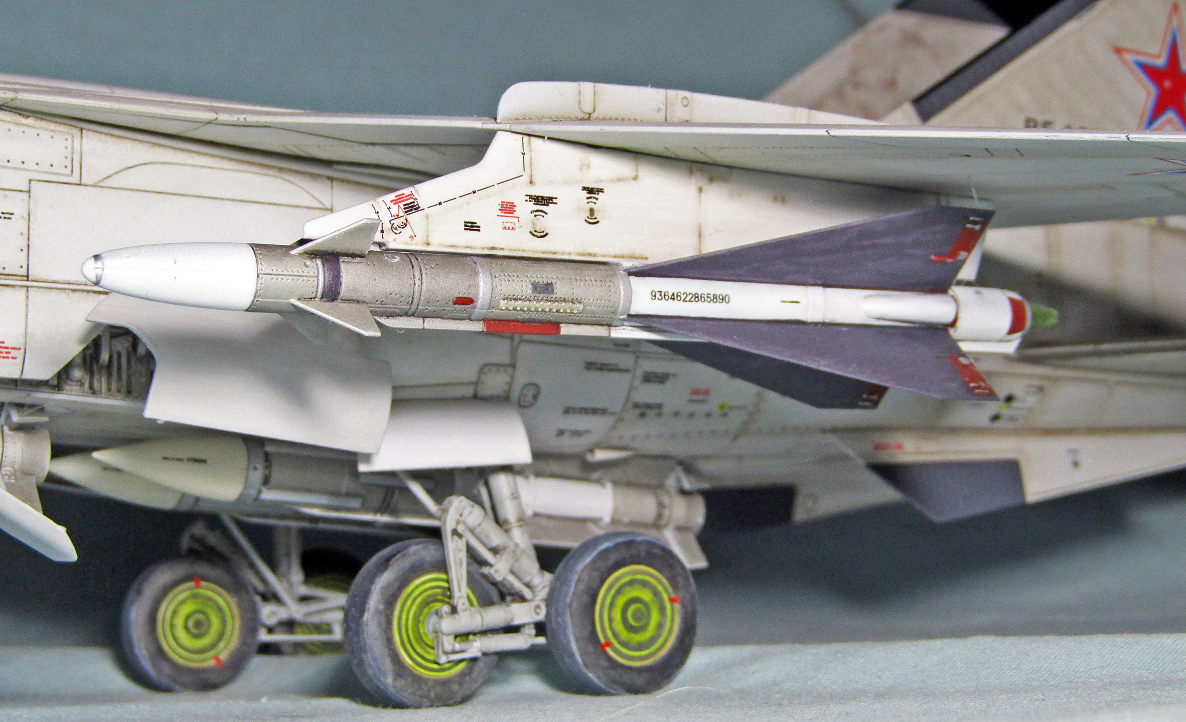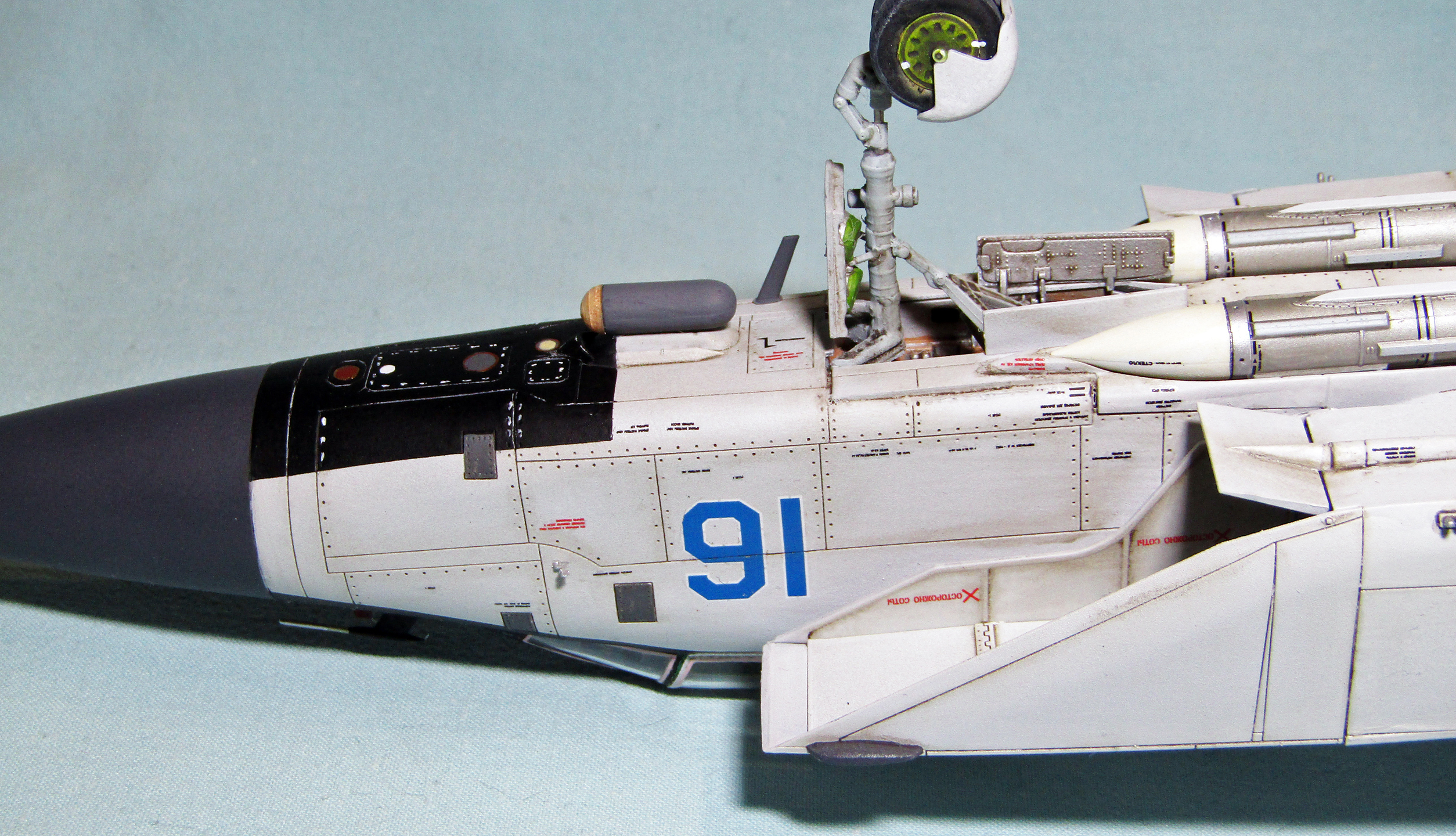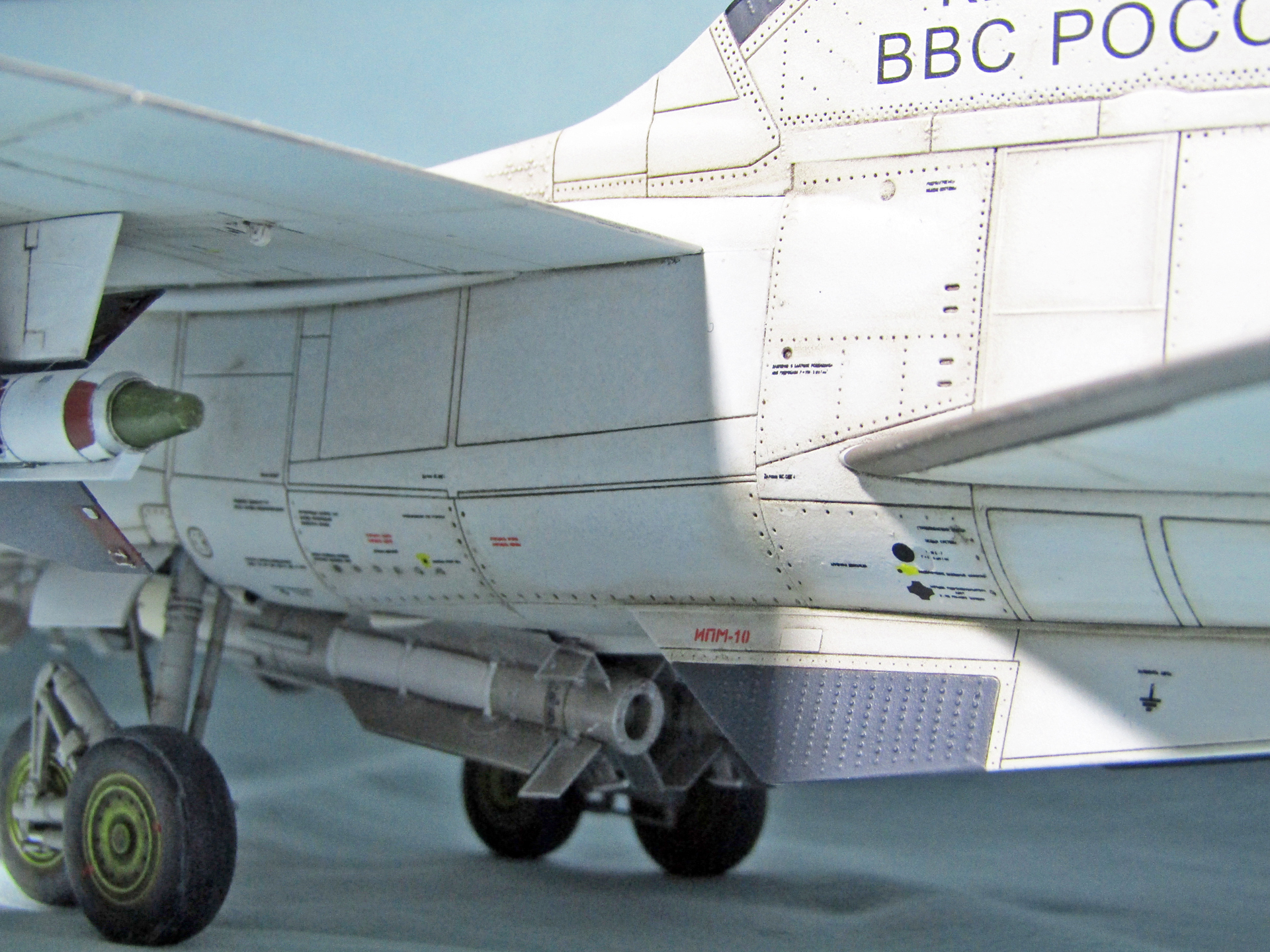 Но вот основной цвет слишком светлый, цвет внутренней части воздухозаборников должен быть стальной и еще вызывает подозрение цвет ниш шаси. В остальном все понравилось.
