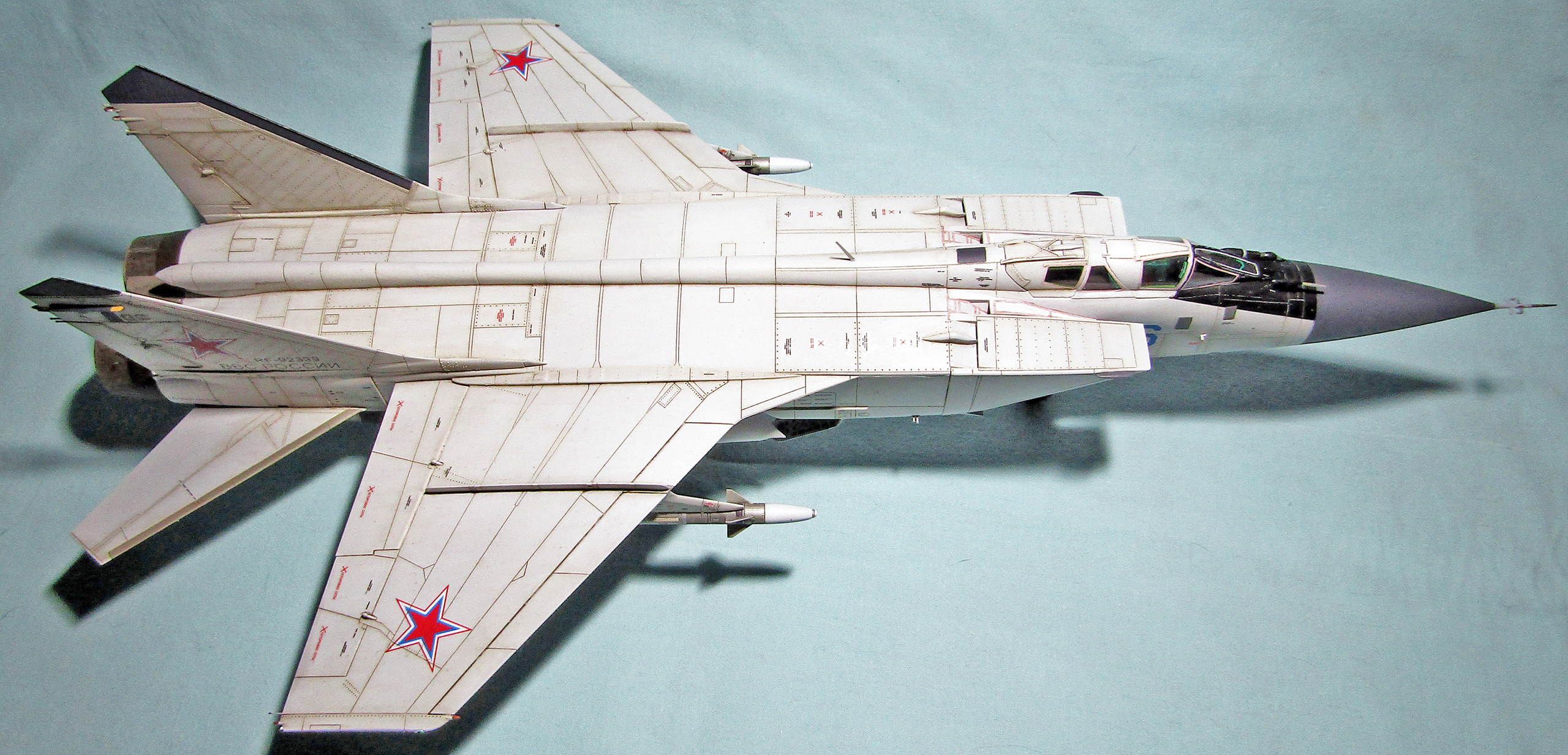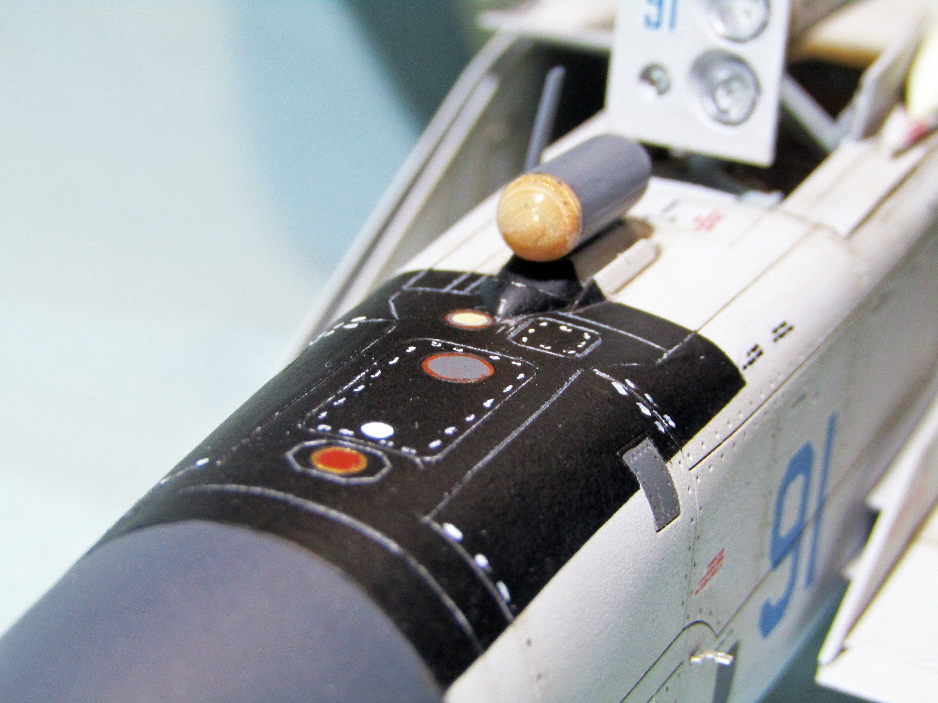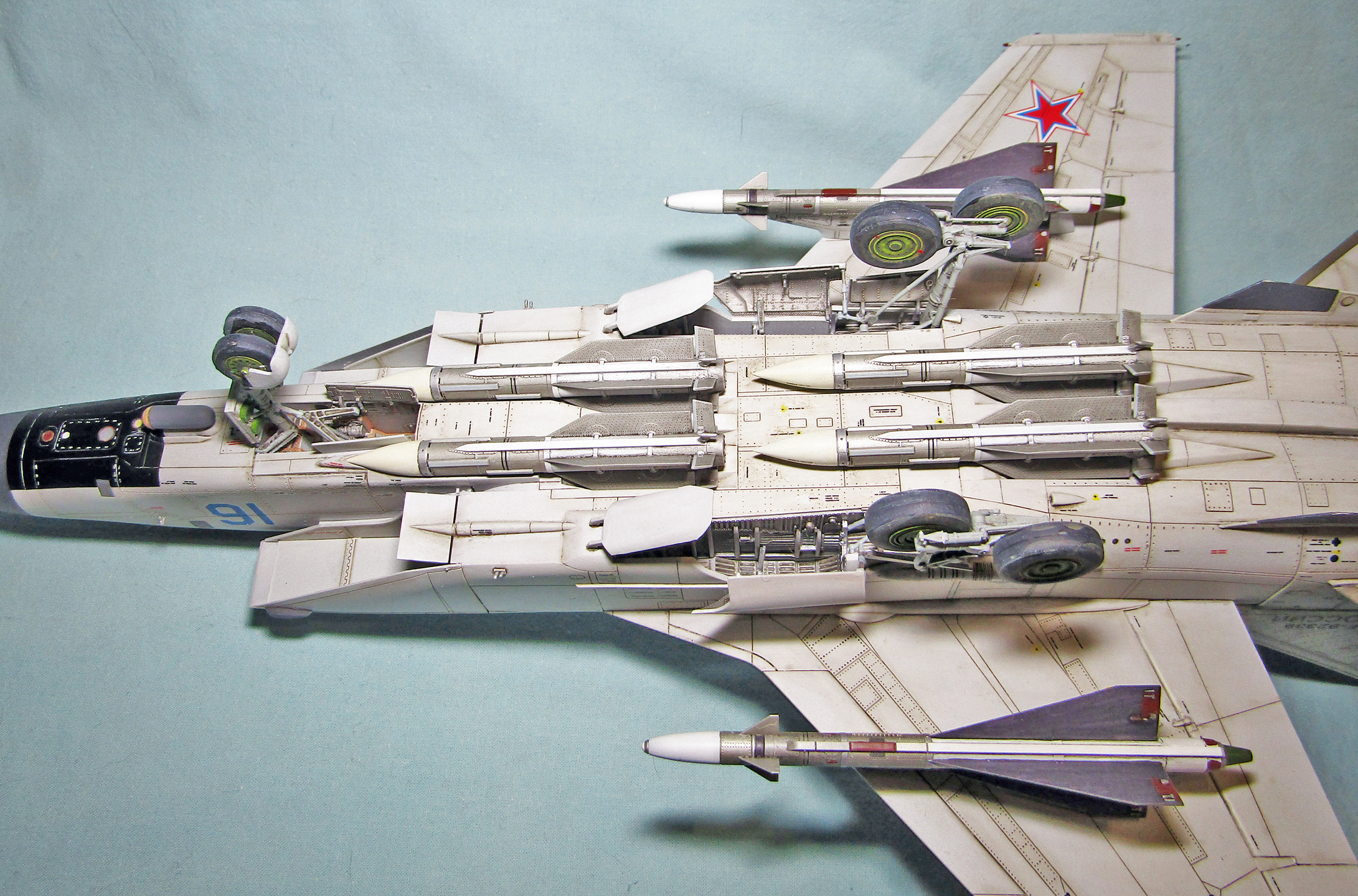 Но вот основной цвет слишком светлый, цвет внутренней части воздухозаборников должен быть стальной и еще вызывает подозрение цвет ниш шаси. В остальном все понравилось.