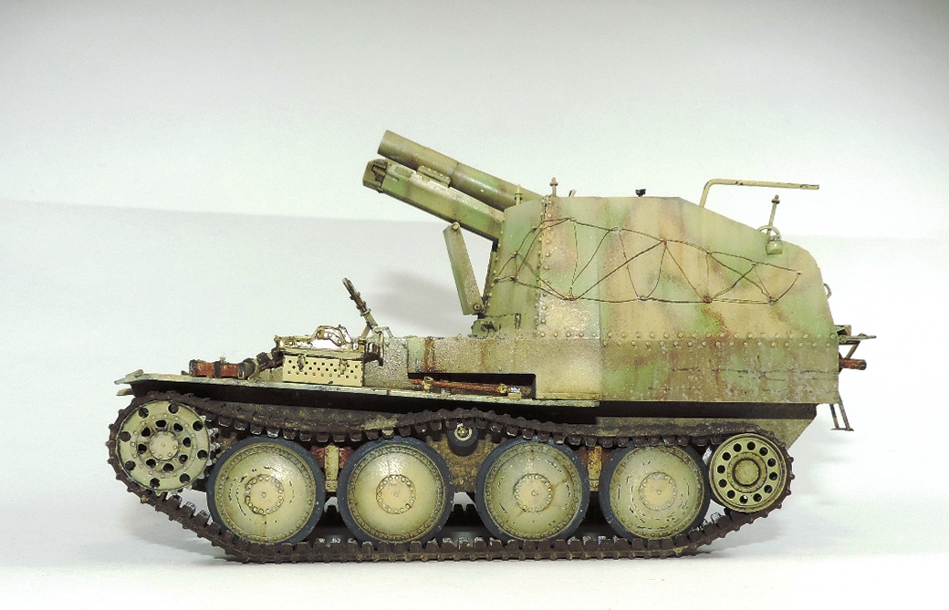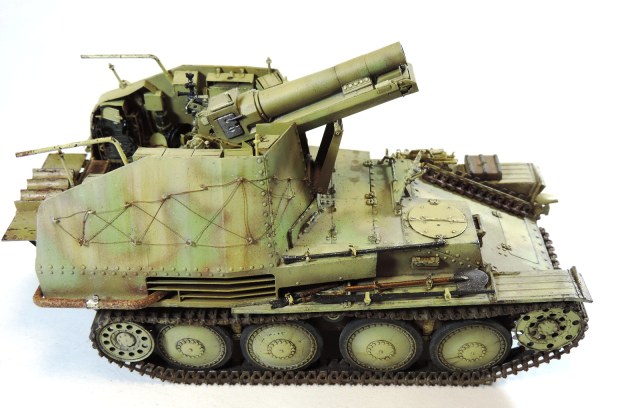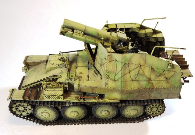 Модель Sd.Kfz.138/1 «Grille» от фирмы Dragon (6429). В качестве дополнений использовал набор фототравления от Griffn Model (L35025) + наборные траки Modelkasten, химия Tamia, MIG и AK.