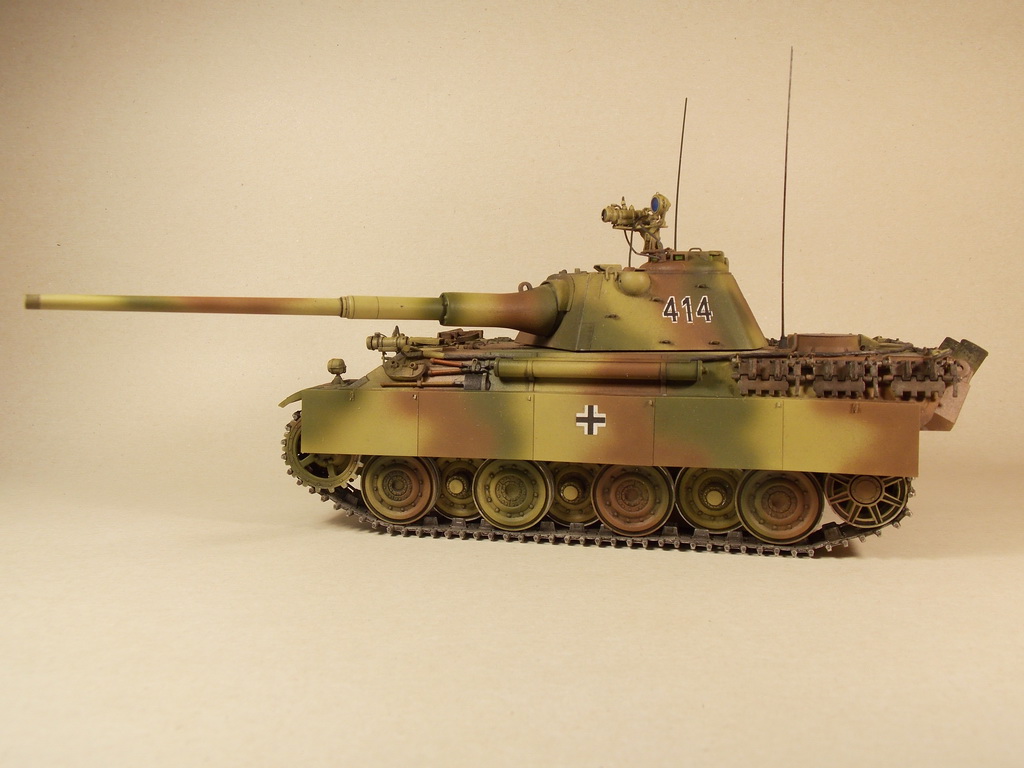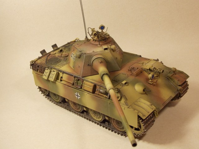 Доделал свою давнюю хотелку,Пантеру цвай из известной сетевой игры. Танк ИМХО один из самых красивых в том муравейнике,поэтому желание иметь такое на полке только крепло,а с наличием всех комплектующих в конце концов воплотилось в "металле"