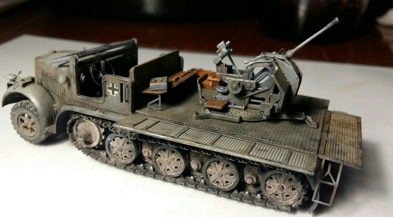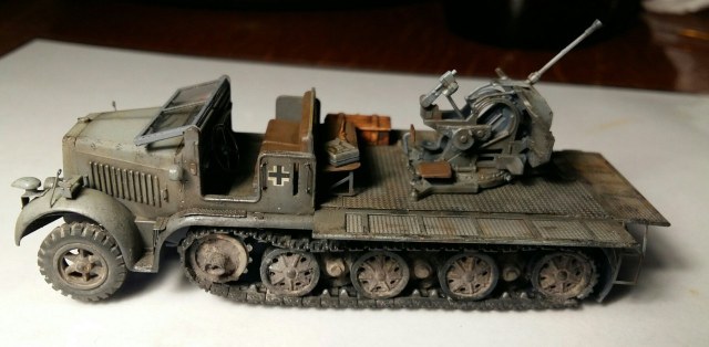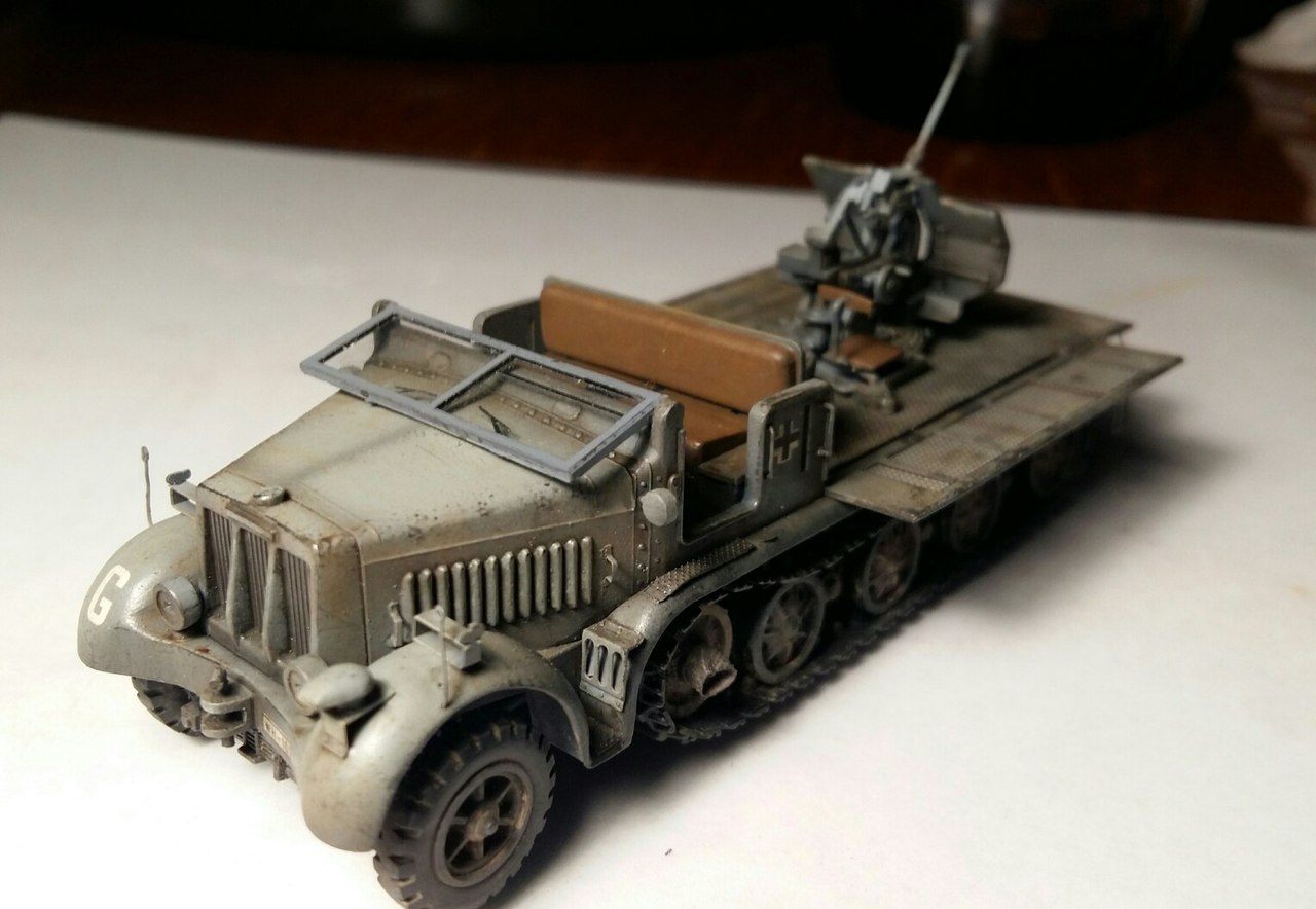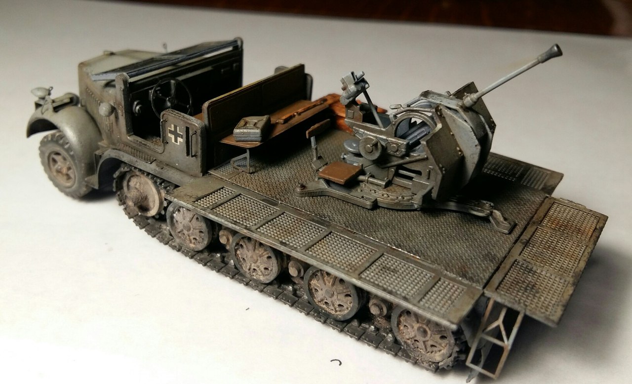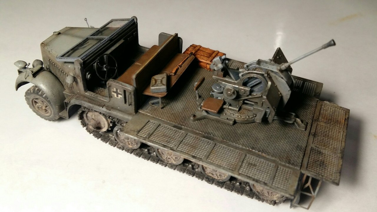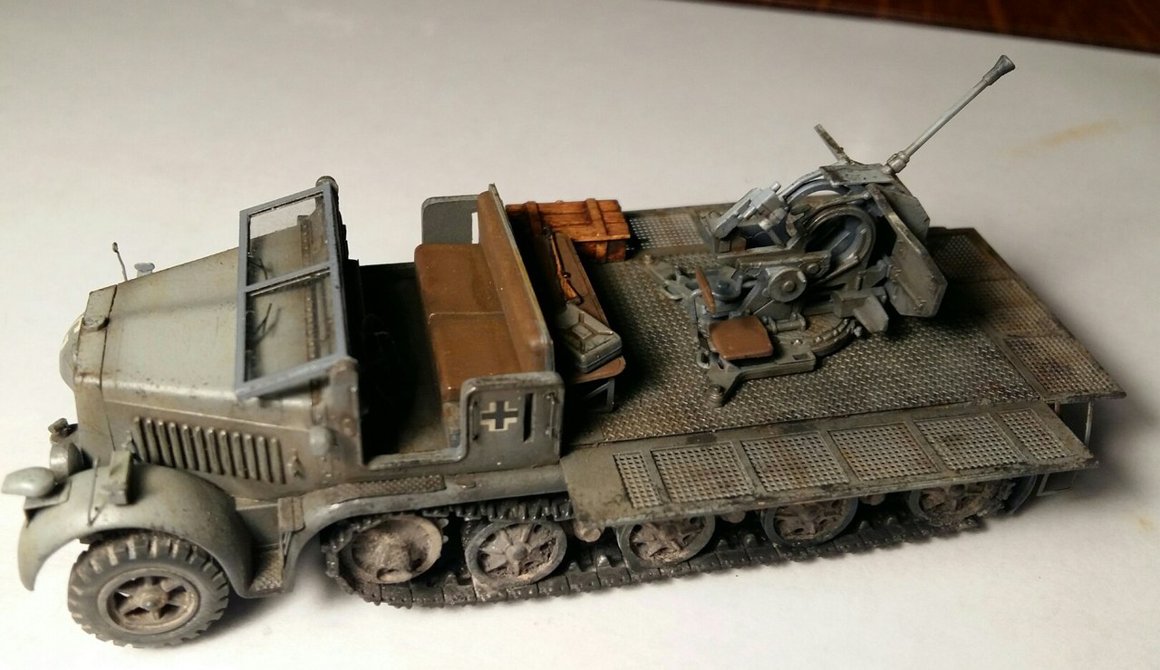 Модификация тоже странная: Sd.Kfz.7/1 это счетверенка 2 см 38, Sd.Kfz.7/2 единичная 3.7 см 36 или 43. А у Вас единичная 2 см 20 Flak 38. В серии такой модификации не существовало.