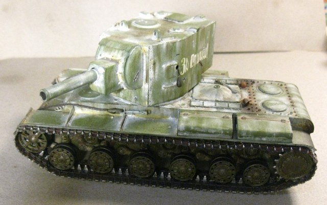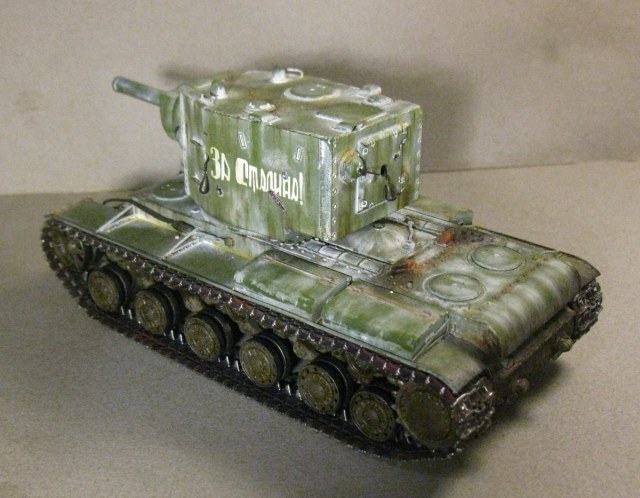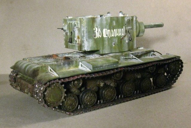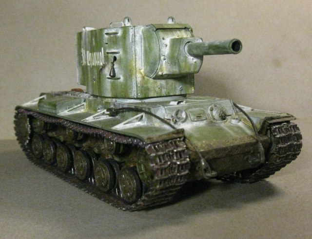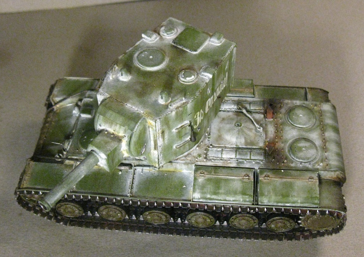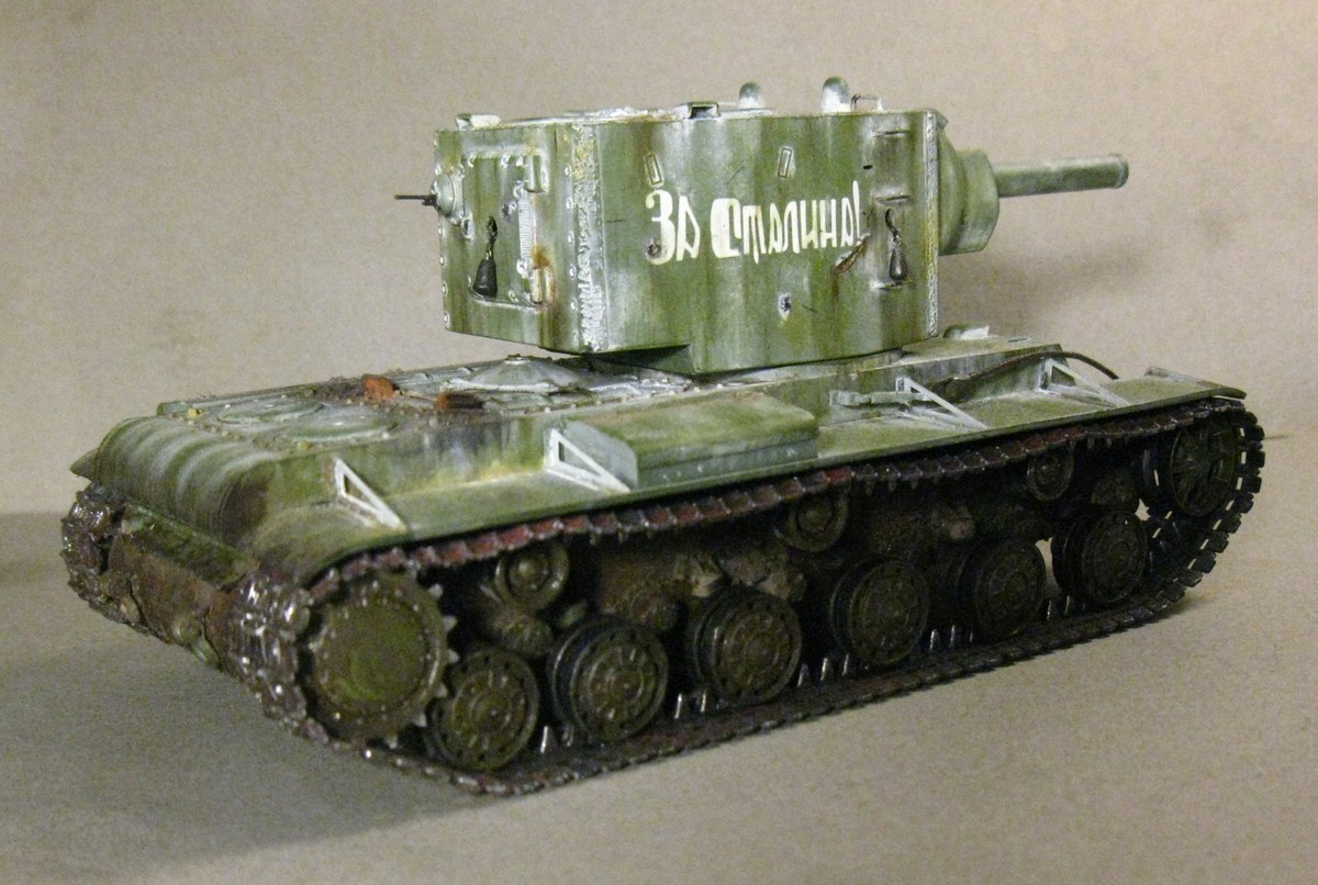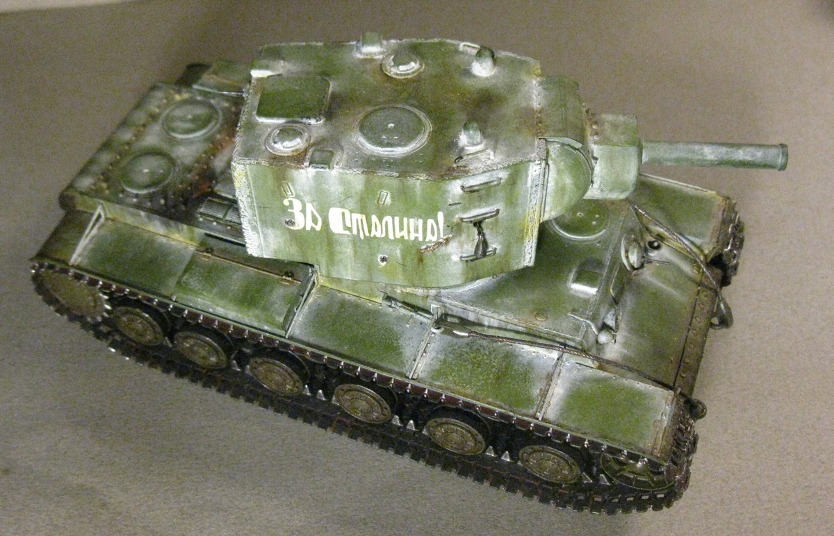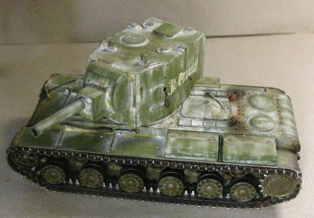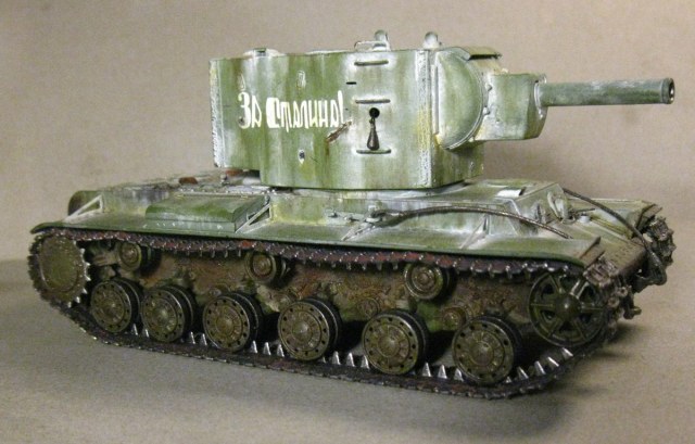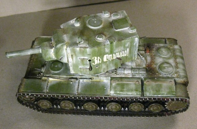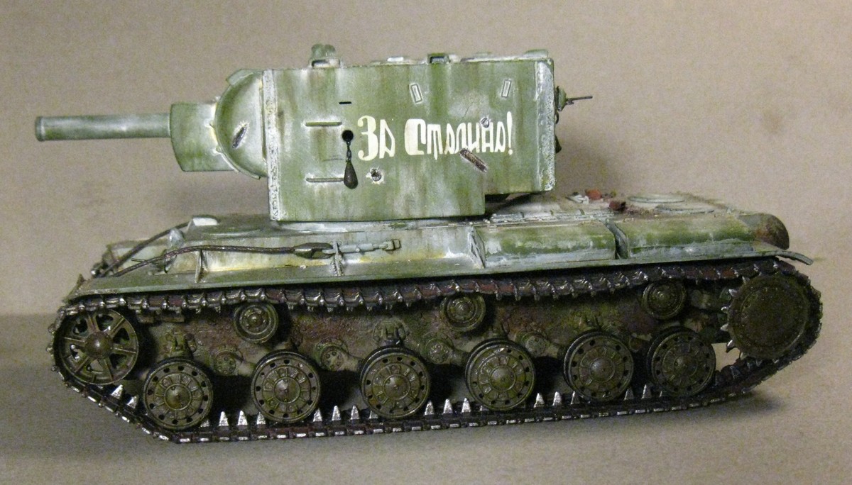 КВ - 2 в 48. Тренировалась делать зимнюю окраску на разных масштабах с помощью лака. На 48 - м краска легла не очень хорошо, по этому пришлось белый дорисовывать маслом. В общем что получилось выкладываю. Доработок по машине никаких, Все чисто из коробки.