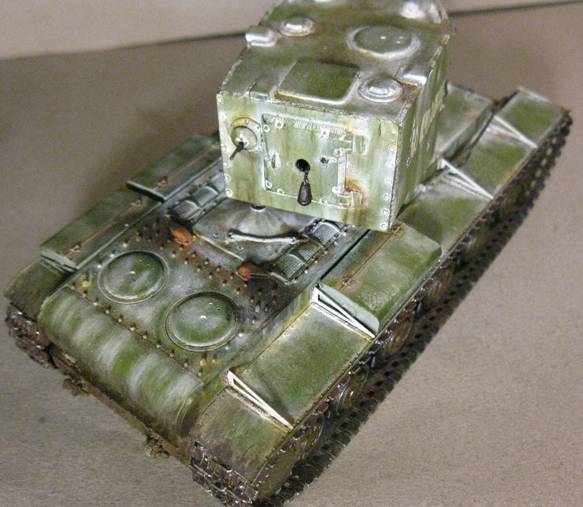 Хотя и изкоробка, но убрать следы для крепления крючьев на башне просто необходимо. Крюки были только на башне танка находящегося в ЦМВС в Москве. Их приварили чтобы башню поставить.