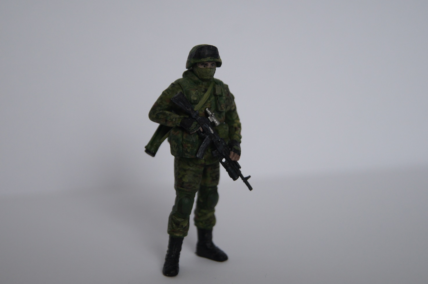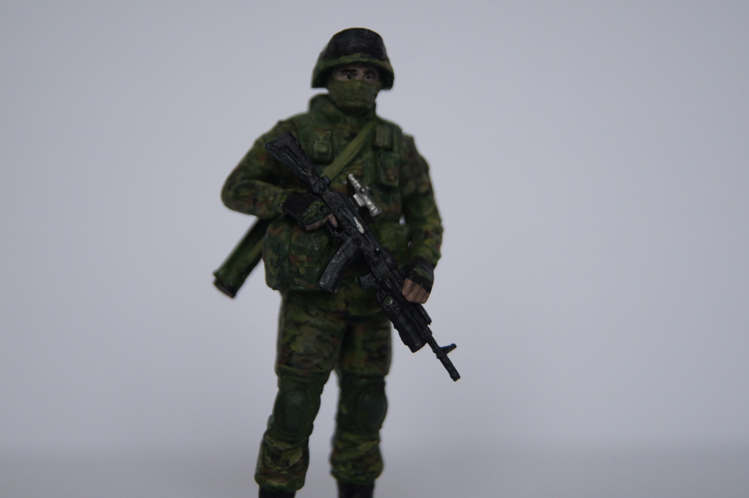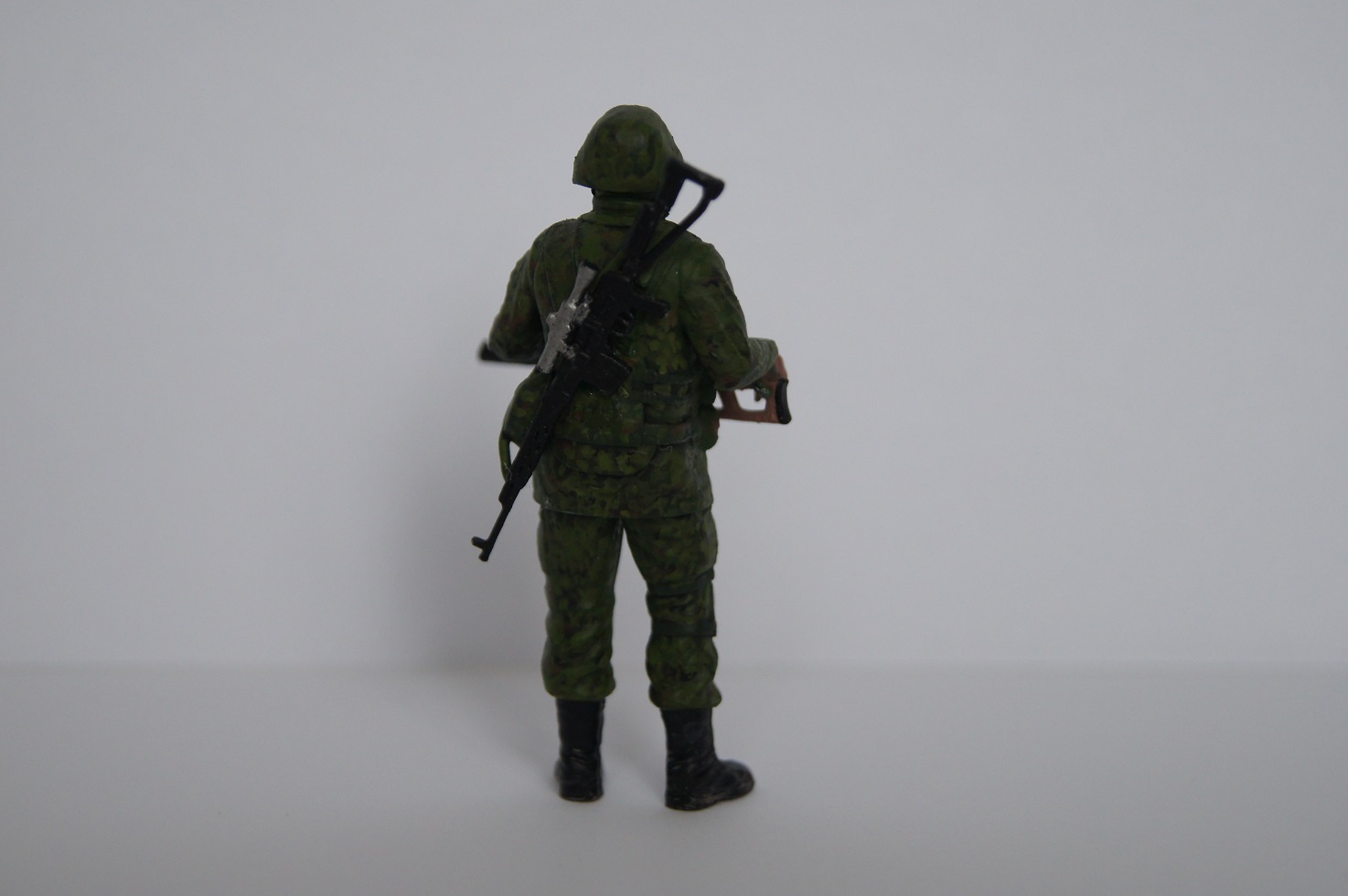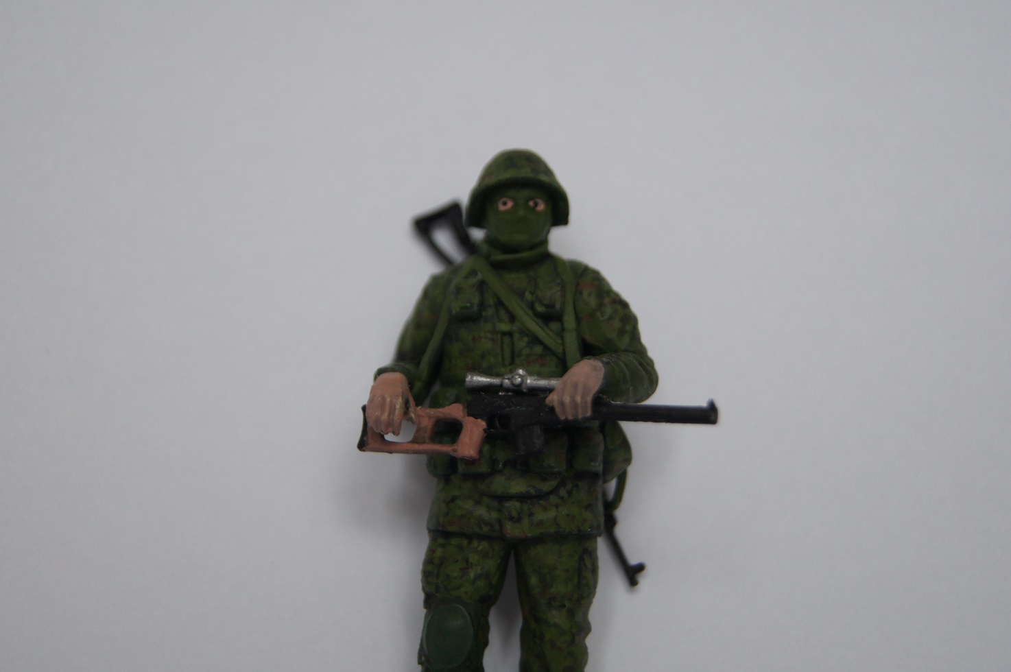 Красил кистью, краски Звезда и Citadel. Попытался воспроизвести знаменитый цифровой камуфляж. Сложно сказать, насколько получилось :), но я в принципе работой остался доволен, хотя делал я этих солдат давно, и сейчас наверное получилось бы лучше.