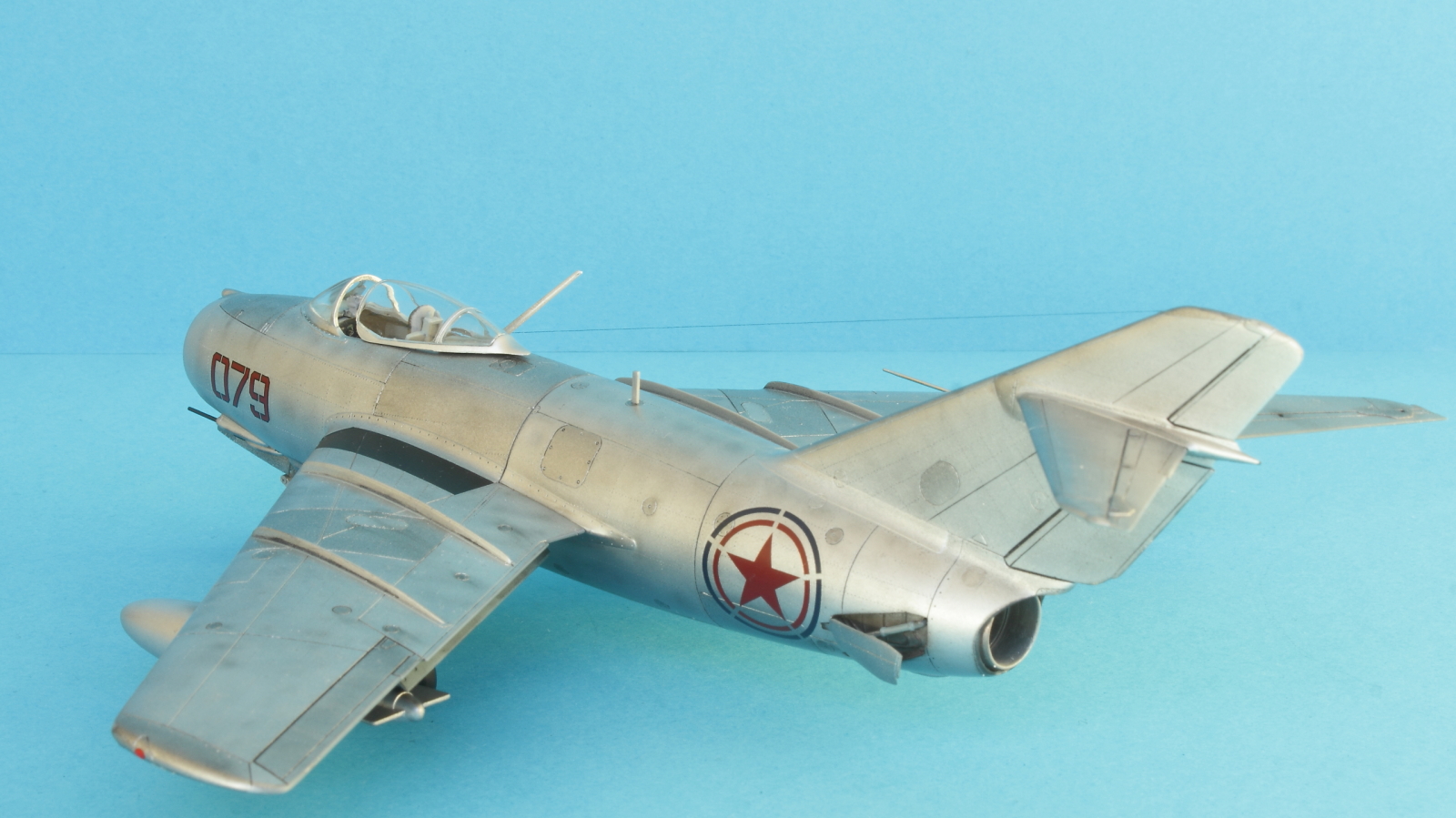 Представляю свою очередную работу МиГ-15 от Tamiya. Самолет известный да и набор тоже. У меня набор был с возможностью сделать самолет прозрачный, расборным с турбиной. Сборка проходила без особых проблем. Из дополнений только стволы орудий, а так полная изкоробка. Красил эмалями от Revell разбавленными родным растворителем. Основных металликов там три вида, с ними и экспериментировал.