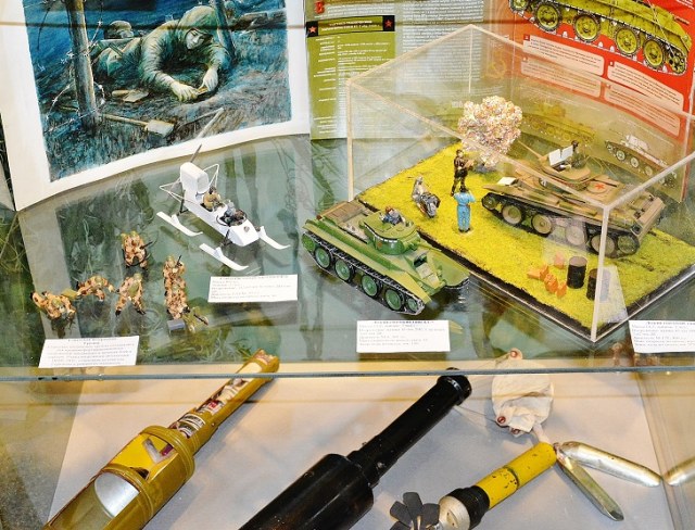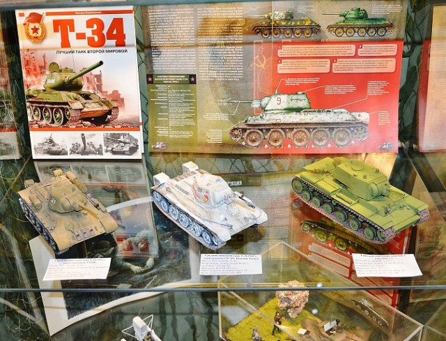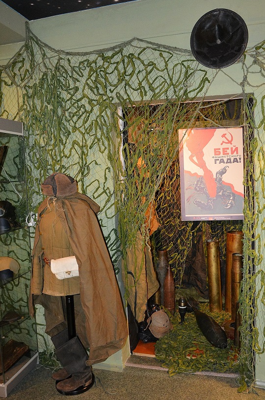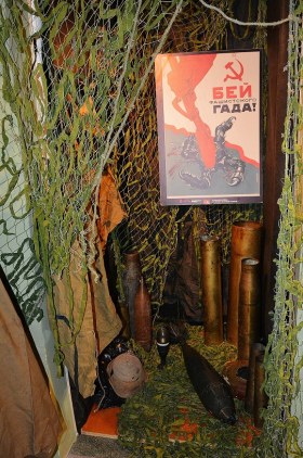 А подборка информации мне понравилась: и предметы быта, головные уборы, образцы вооружения и снарядов, техника в моделях и в книгах, плакаты и живопись, фото, портреты и бюсты участников - все дает представление о тех временах, погружает в атмосферу того времени.