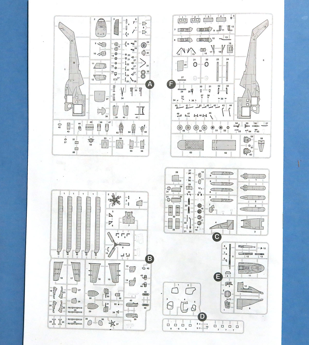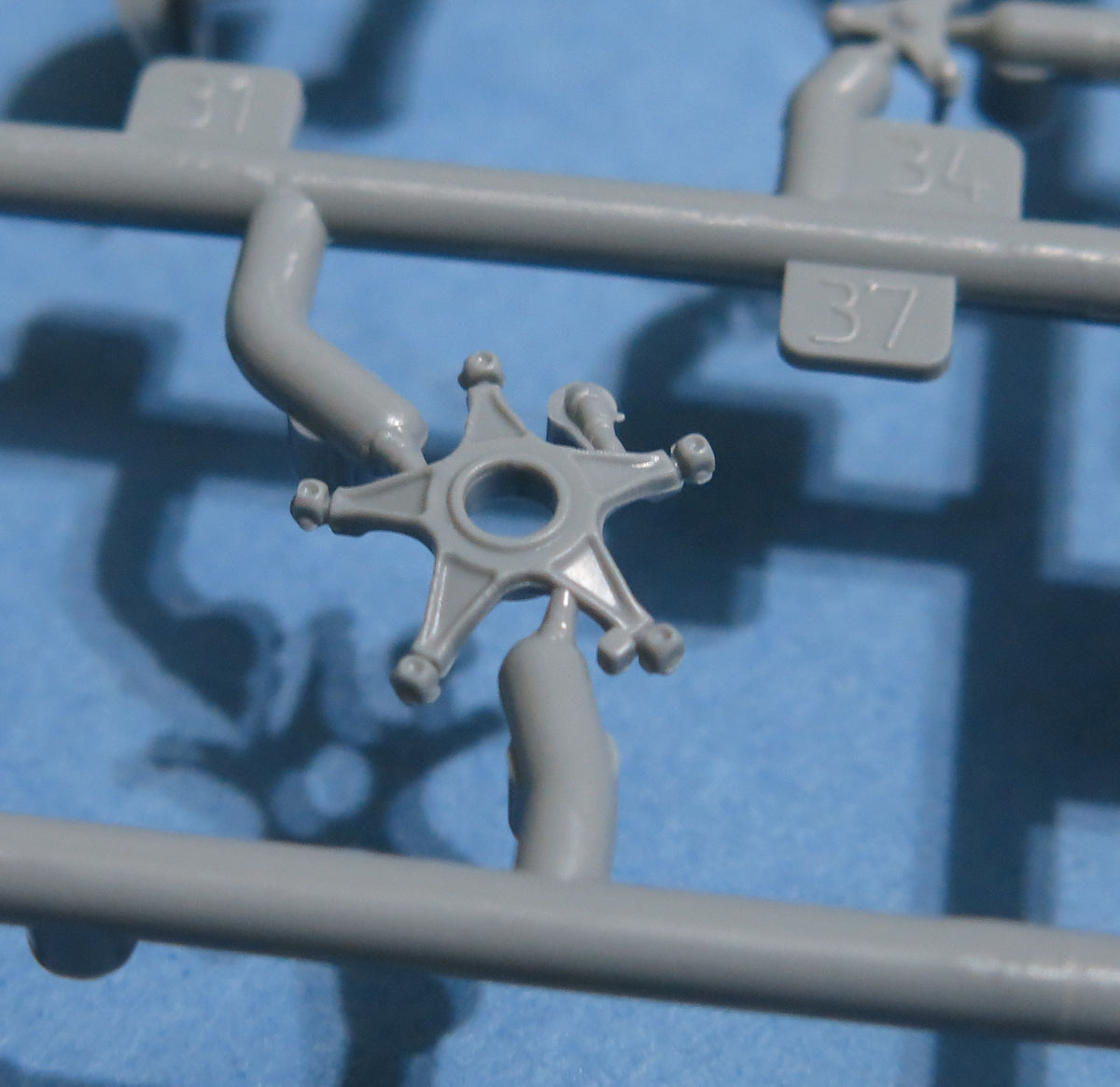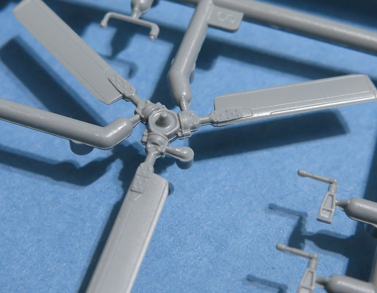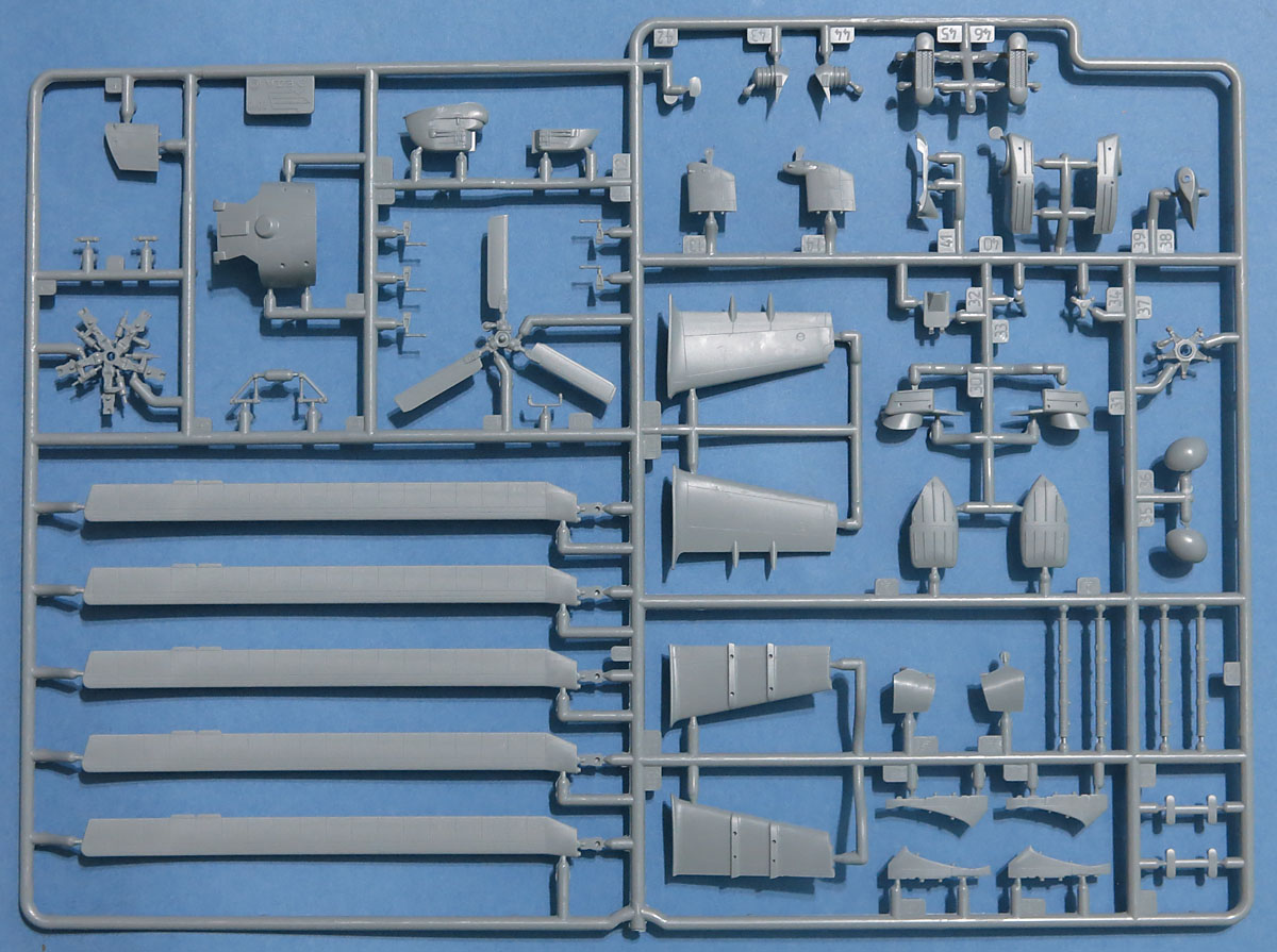 Литник B: - тоже не новичок - винты, крылья, немного ракет, ЭВУ. Расшивочка тонкая, незамыленная, средней глубины. Микросмещения и микрооблой есть - снял как мог - но критичным опять таки не назову - два раза шкуркой махнуть.