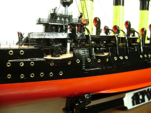 Была ли нанесена белая ватерлиния? На этот вопрос наверно знают ответ только коллеги, глубоко погружённые в тему Русско-японской войны. Мне кажется, что на фото крейсера в Маниле ватерлиния есть.