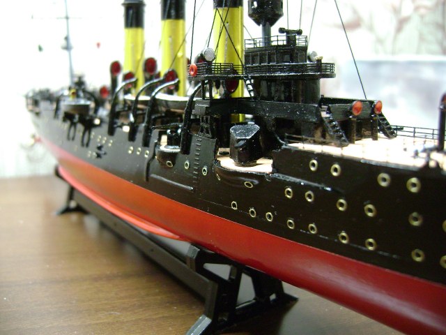Флагштоки на носу и корме слишком толсты,щиты орудий не на Цусиму,цвет палубы и труб немного не тот нмв.