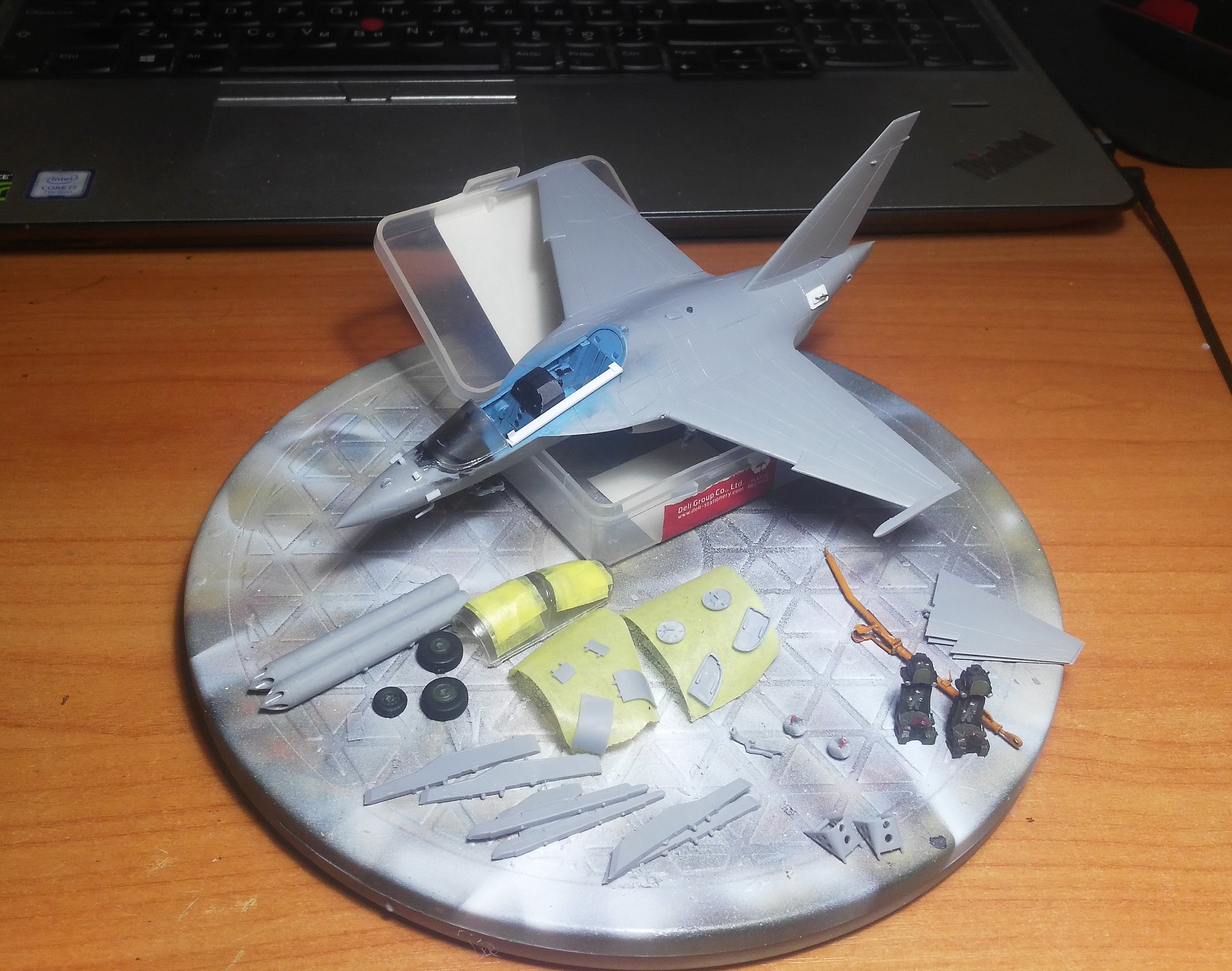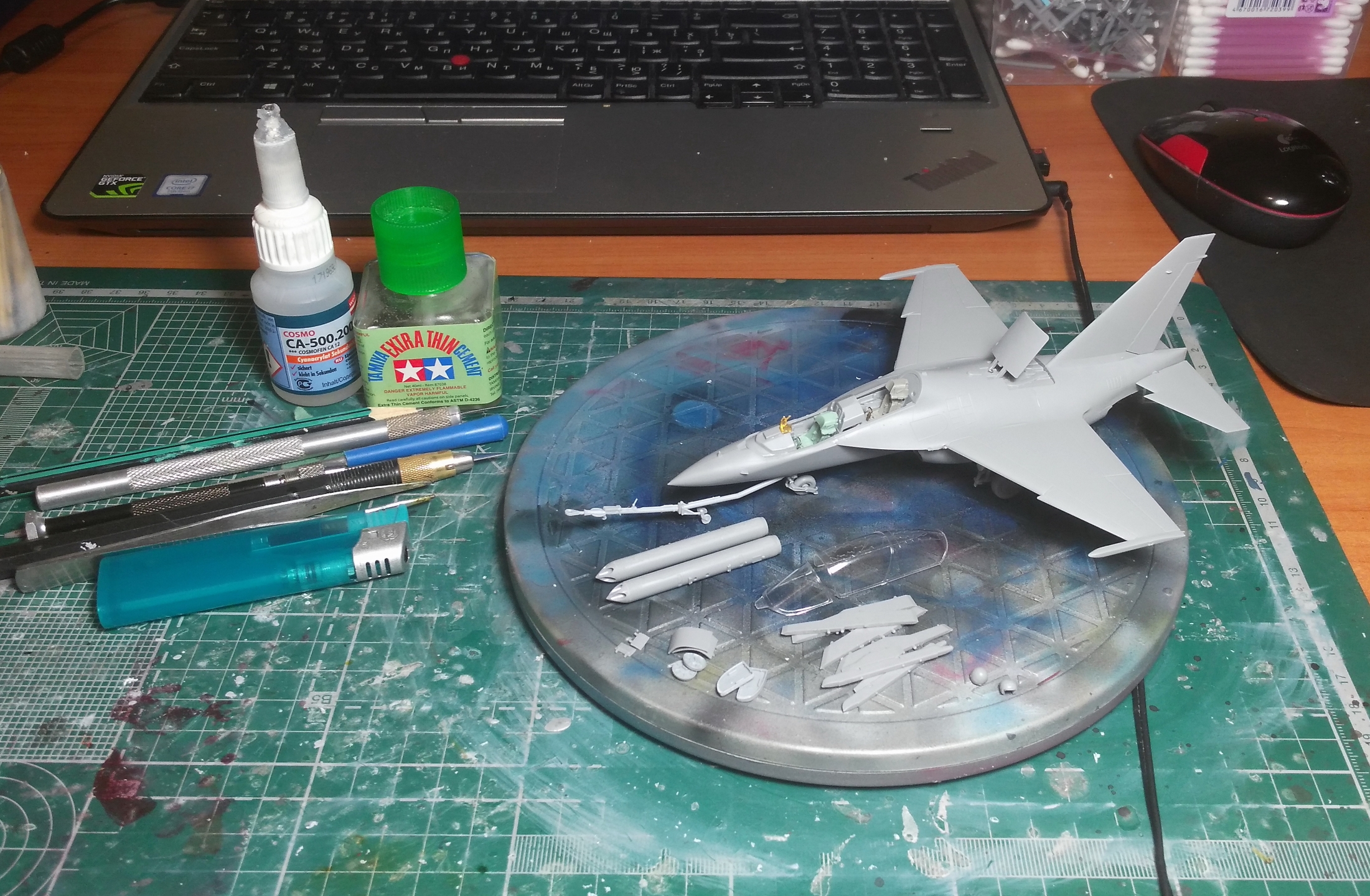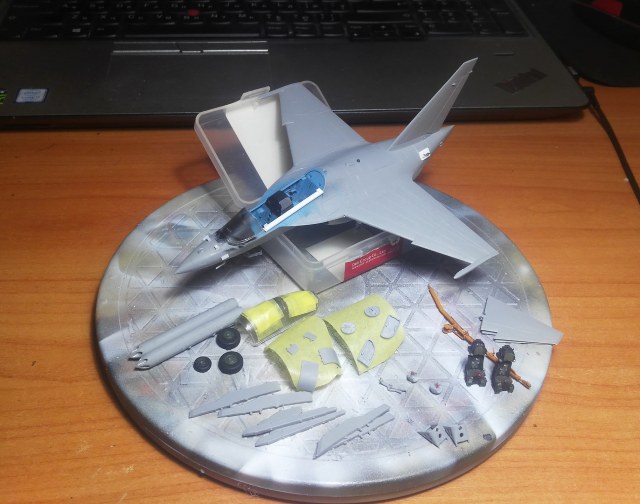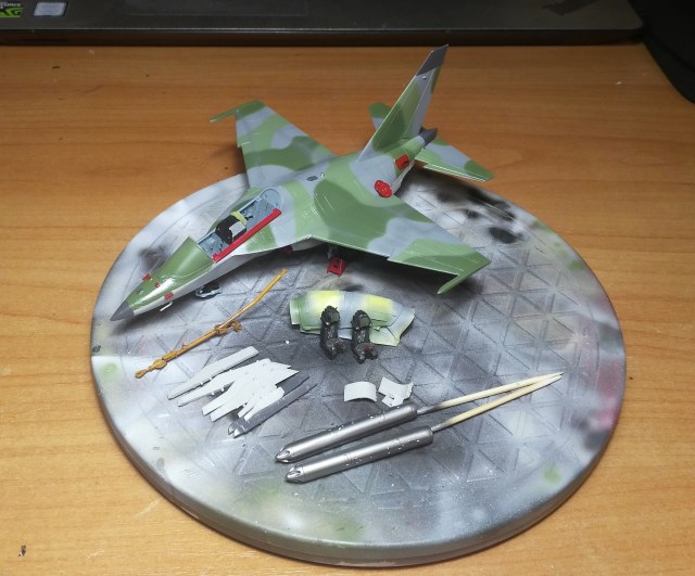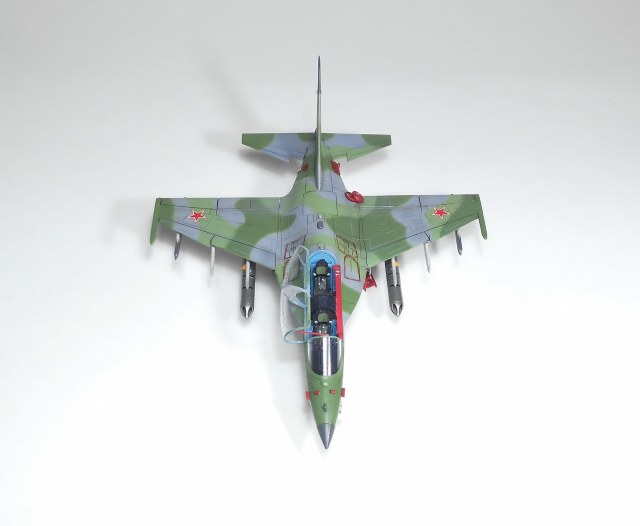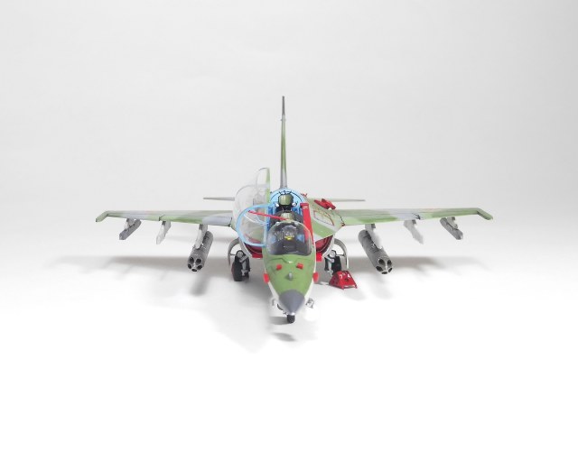 Я приобрёл 4 коробки Як-130, представленная здесь модель выступает в качестве "первого блина" для отработки схемы сборки этого красивого самолёта. Пирошнур было решено делать декалью, для этого была заказана декаль у Алексея Бацких. Модель собиралась не без приключений из-за сложного членения и моих ошибок по первому разу. Кабину украсил креслами от "Неомеги", которые были перепилены для соответствия облегчённым креслам Як-130, и ИЛС от Ace, экраны- пайетки. Воздухозаборники на первой модели решил заглушить заглушками от "Арматы". Перерезал расшивку почти на всей модели, чтобы была возможность её выделить. Схему вооружения выбрал по фото реального борта. Окрашивал модель "Аканом", ганзой и тамией. Декаль в наборе очень хорошая, никаких проблем с ней не было. Следующий Як-130 буду делать с учётом полученного опыта.