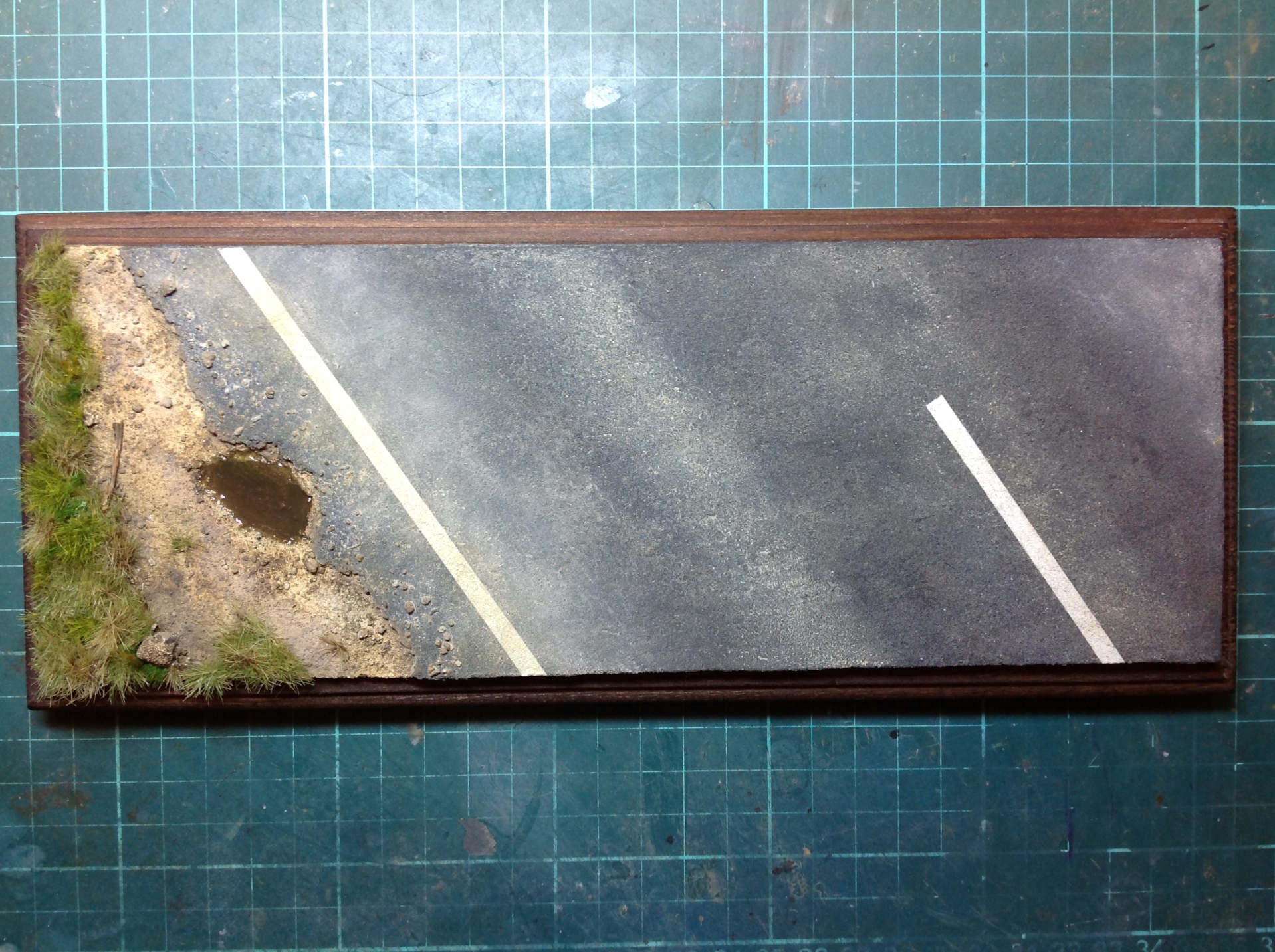 Для формирования «лужи» и края асфальтового покрытия шоссе использовал пробковую подложку для паркетной доски или ламината, оставшуюся после ремонта.