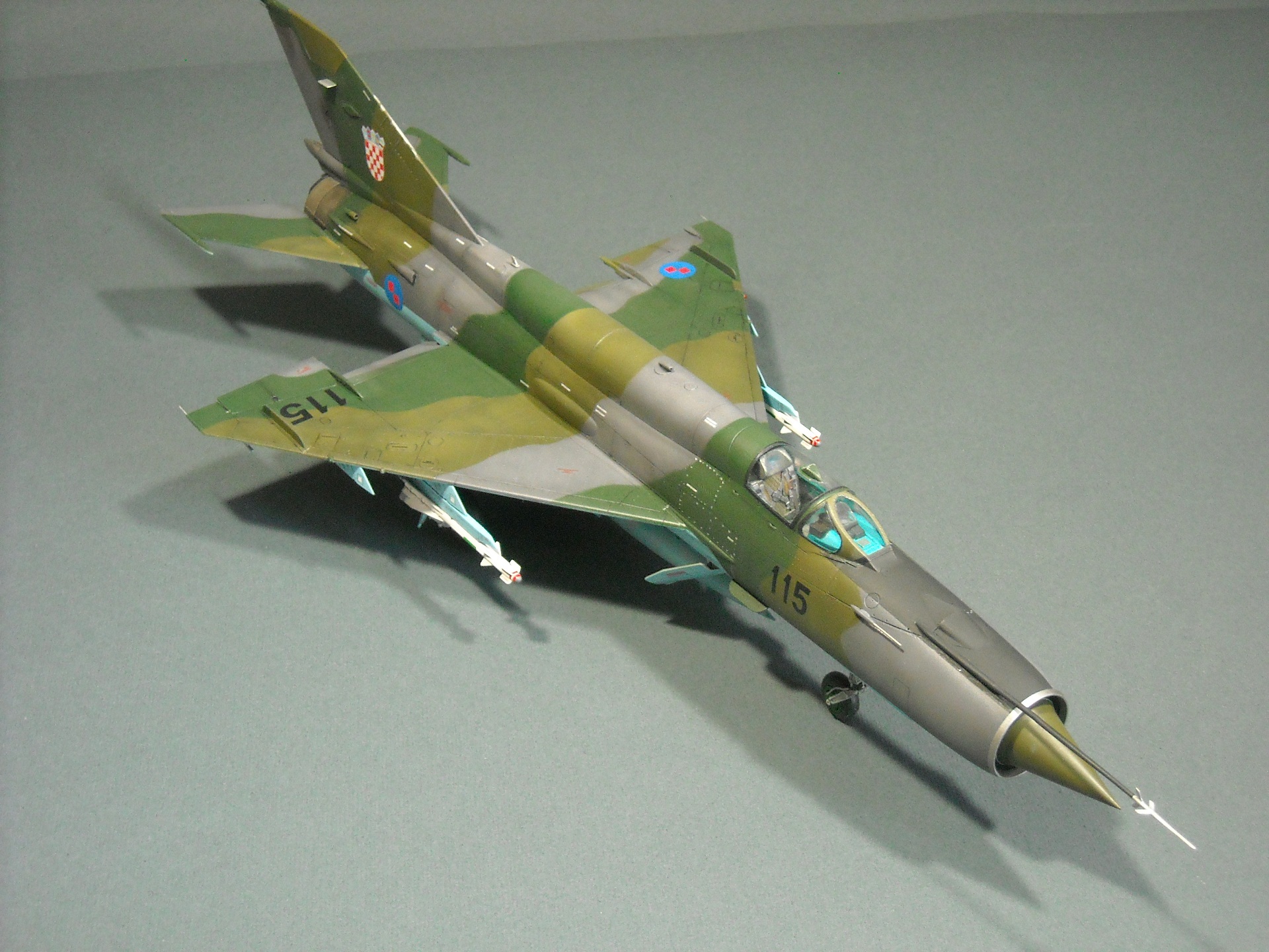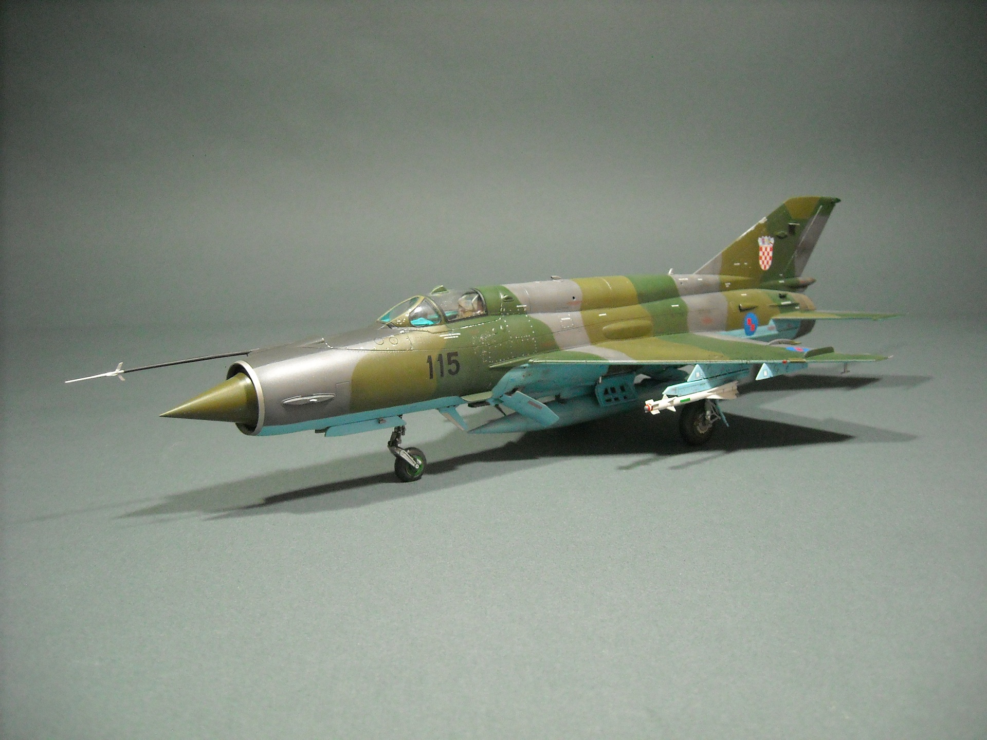 Всем доброго времени суток. Решил показать ещё одну свою работу, МиГ21 бис ВВС Хорватии от "Эдика" профипак .Собирал летом , в сборке проблемы были только с расшивкой, уж больно тонкая и местами замыленная, тоже касается и клёпа, который весь углублял шилом,и добавлял ревиттером новый, добавил немного шлангов на стойки, фары, и спаял ещё какие то штучки-дрючки ,на цилиндрах фольга. Красил нитро "ганзой" ,смывка масло,уайт-спирит, декали родные.Вкратце вроде всё. Приятного просмотра.