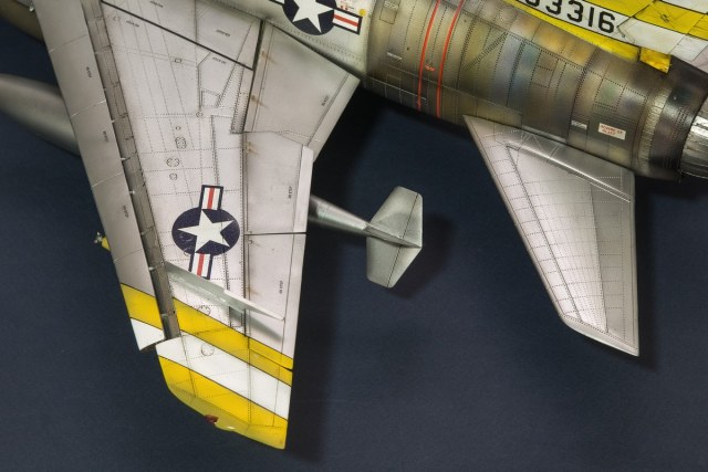 ПО состыковке крыльев, щелям и так далее.Такой вопрос часто задают, но ничего особенного здесь нет. Первое - подгонка до покраски.это обязательно, очень часто на моделях такого масштаба эти соединения сделаны неплохо. Второе - например, на F-100D стабилизаторы цельноповоротные, тут вообще щель надо оставлять. Ну и последнее - щели бывают, без этого никак, шпаклюю. НО я возле щели проклеиваю скотч - отступаю с 2х сторон на пару мм, шпаклюю, обрабатываю, крашу.Скотч снимаю, контролирую, ну и т.д. Масштаб позволяет .И скажу ещё - знаю, что многие ребята перешли на такую сборку и покраску, писали, нравится - так удобнее для большого масштаба.Хотя каждый волен как ему удобнене