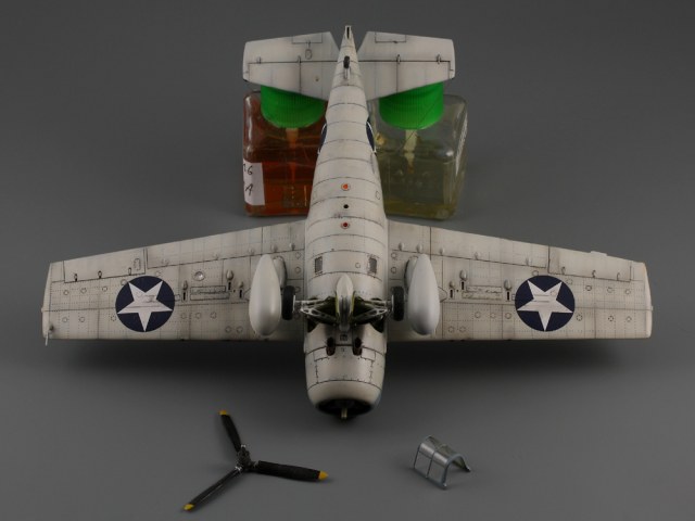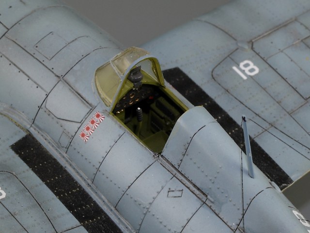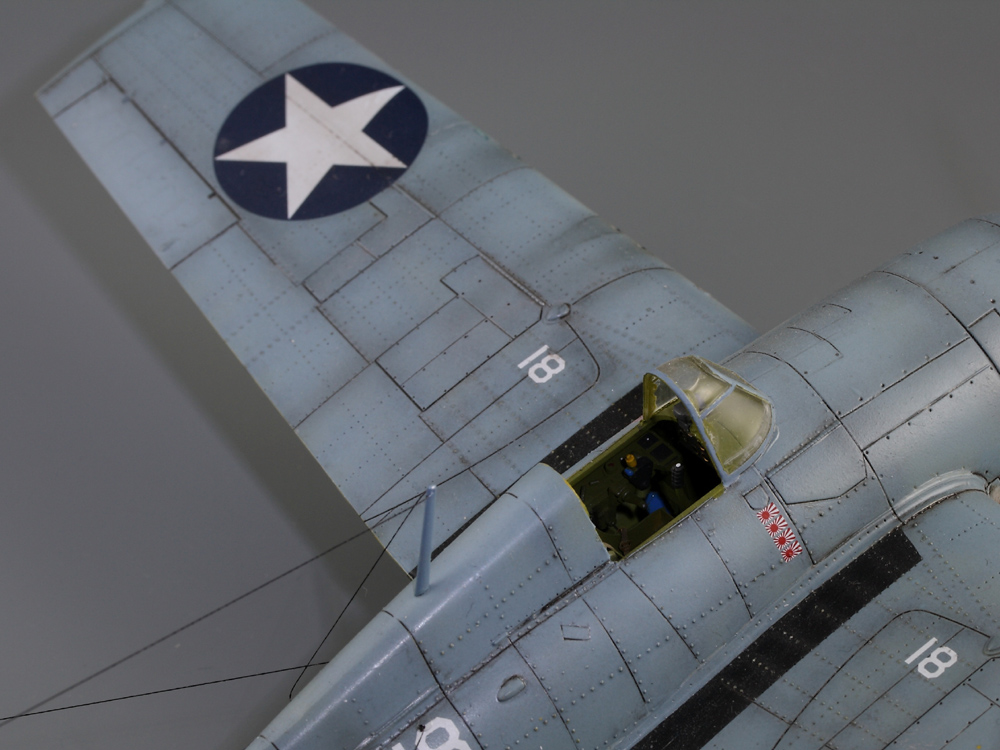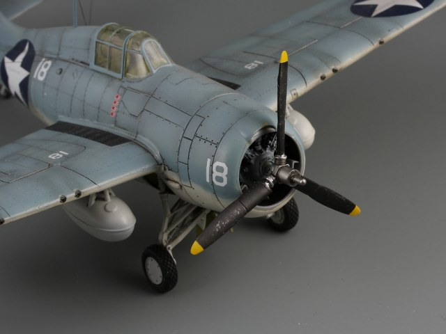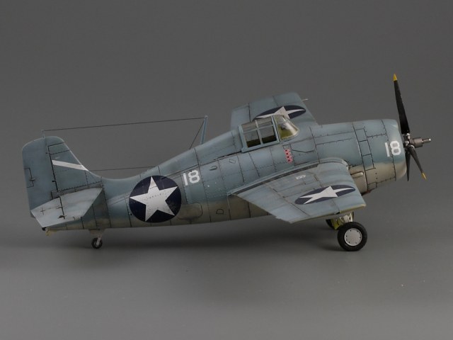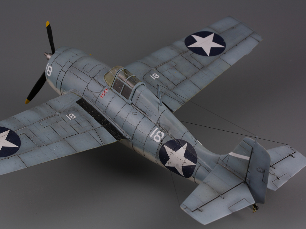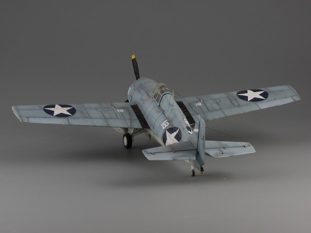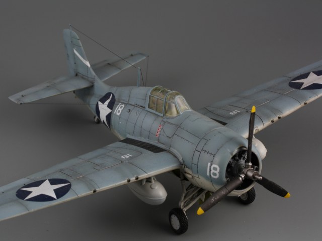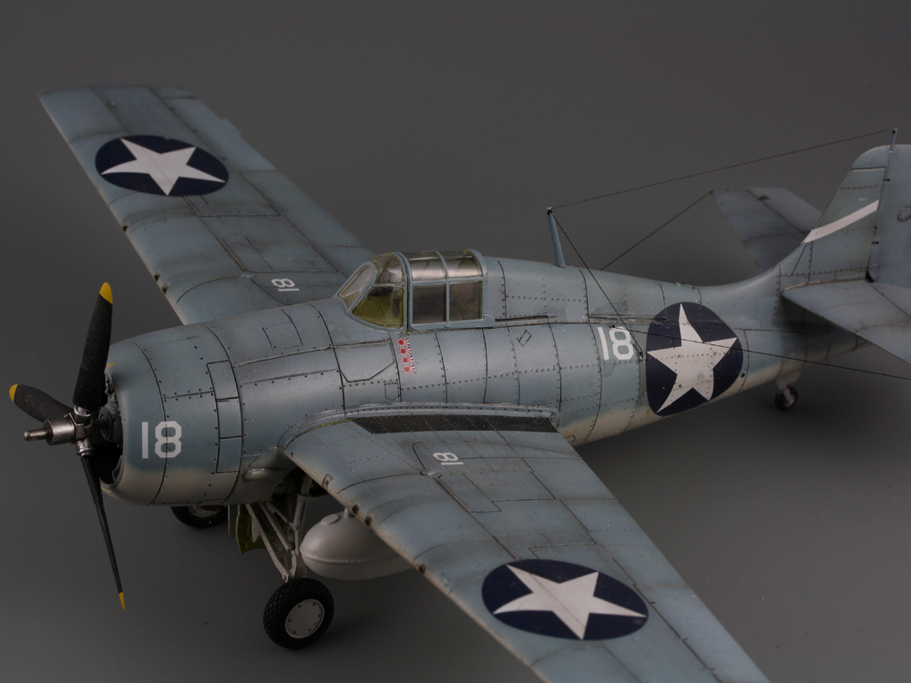 Сдается мне, что на модели звезд многовато. Если память не изменяет, то сокращение ОЗ на крыле с 4-х до 2-х шт., произошло еще до войны: весна или лето 1941г. (точно уже не помню), а вот красные круги из центра звезд убрали уже после Перл-Харбора: весной 1942. И система распознавания "свой-чужой" (боковые антенны), тоже примерно тогда же и появилась.