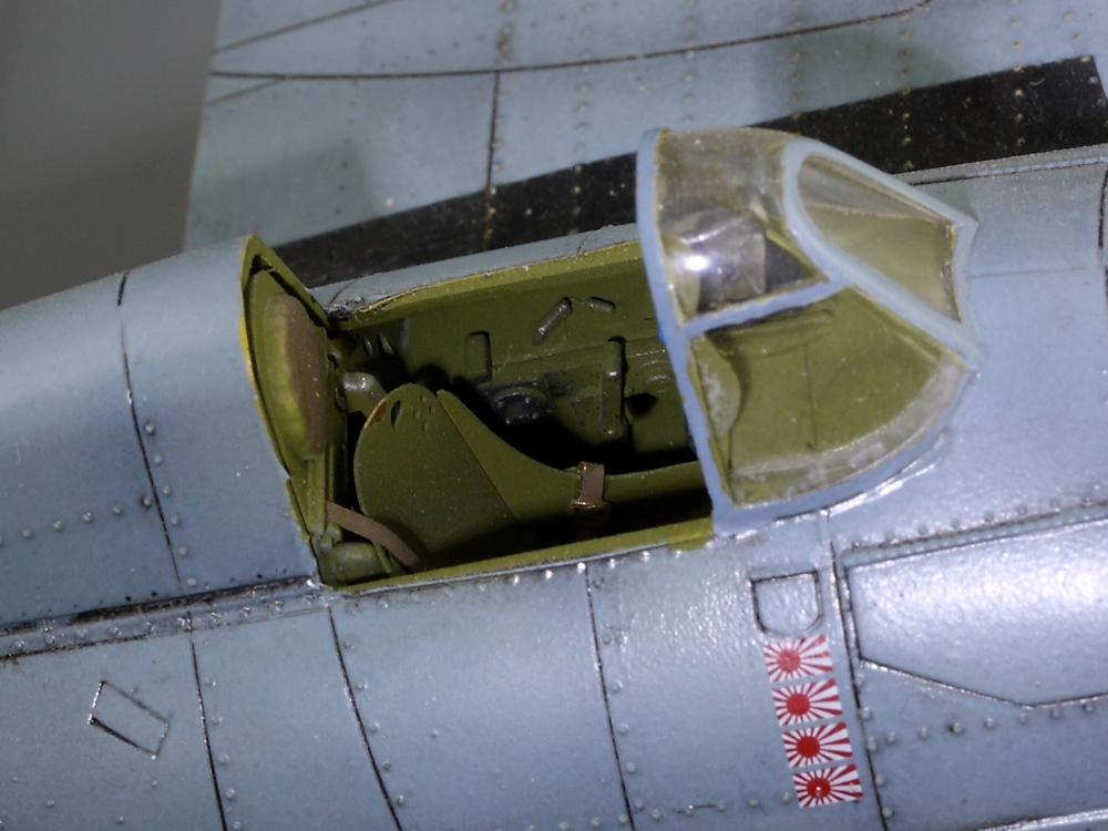 Интерьер кокпита окрашен АКАНовским акрилуретаном FS 34151. Сам кокпит доработан фототравлением. Из него сделал сиденье, приборку, ремни, компас. Добавлена проводка на полу, ручки кранов и клапанов.