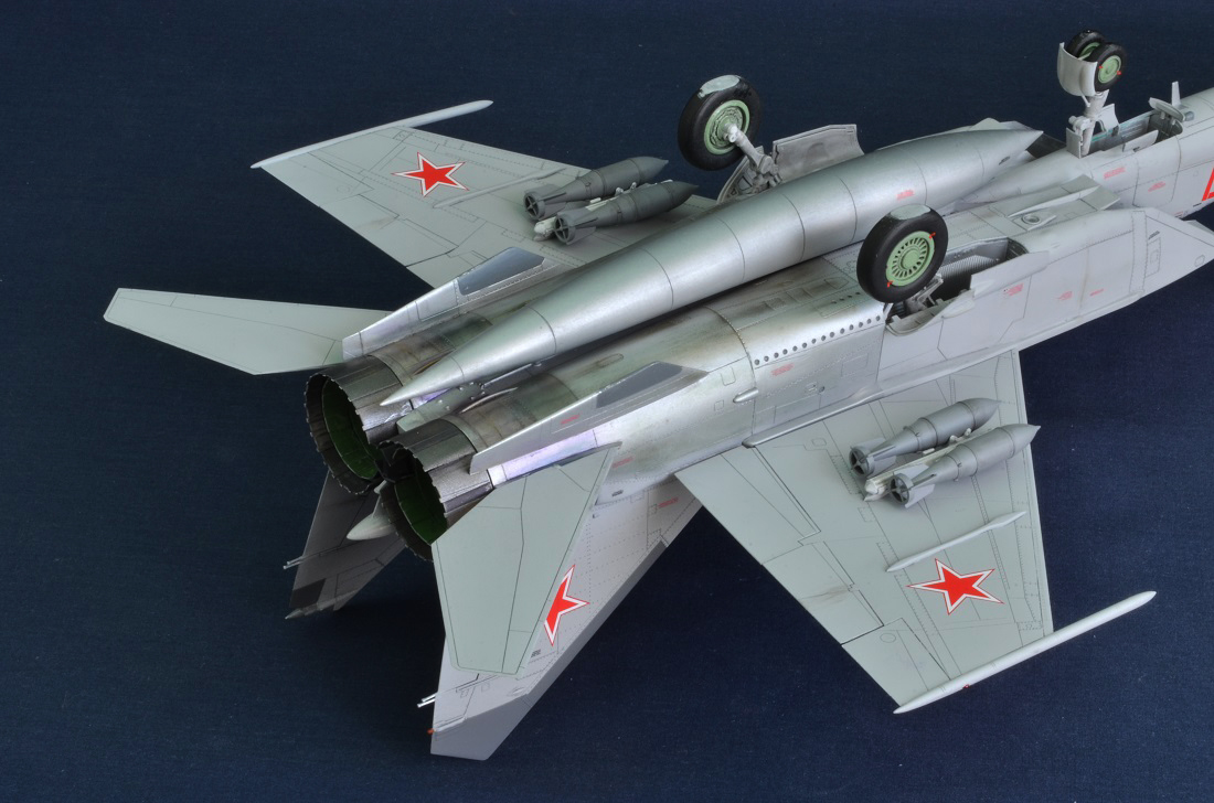 По сборке данного набора особо проблем не возникало, детали и агрегаты в сборе стыковались без проблем , без щелей и ступенек, единственный был вопрос по стыковке головной части фюзеляжа к носовой там потребовалось небольшое кол-во шпаклевки. Окрашена модель нитро-эмалью,тон разводил сам руководствуясь фото из интернета , мотогондолы и сопла AS-12 BareMetal Silver от Tamyia и пудреница от Tamyia. Колеса шасси черный акрил от ЗВЕЗДЫ , диски колес шасси АКАН зеленый (выцветший). Декали в честности бортовые номера и звезды из набора,техничка от БЕГЕМОТа.