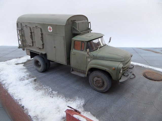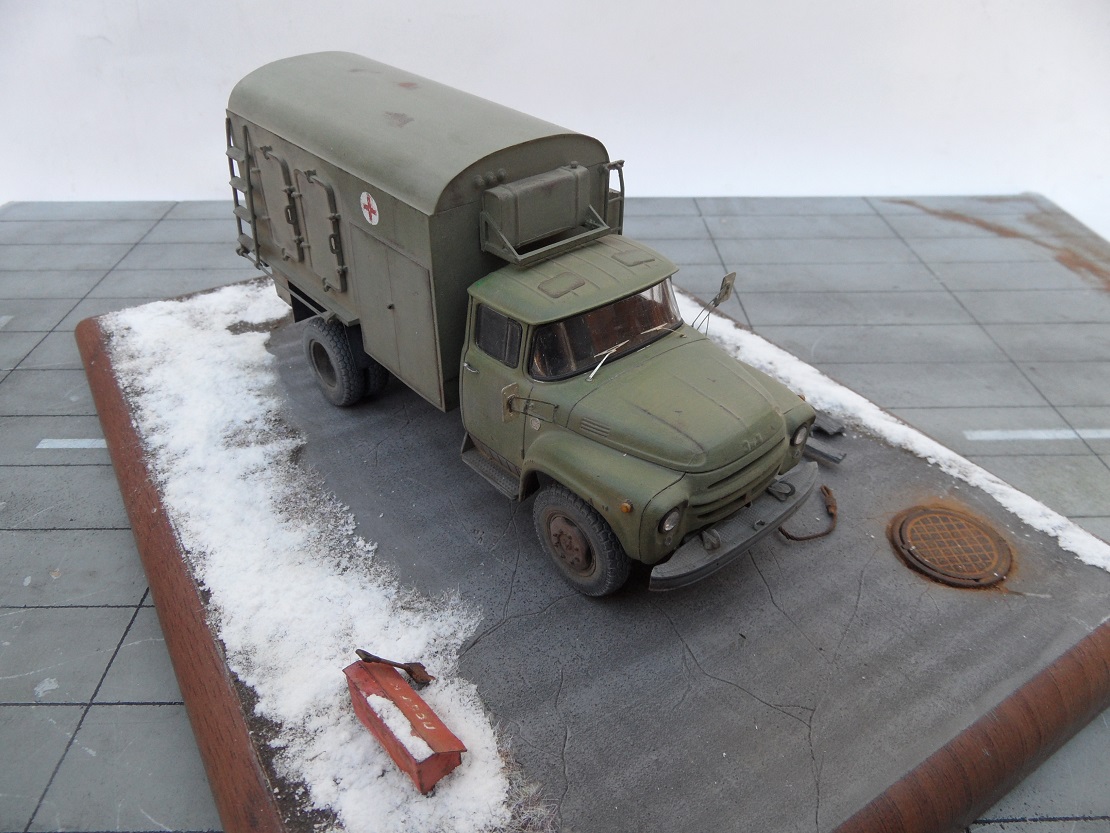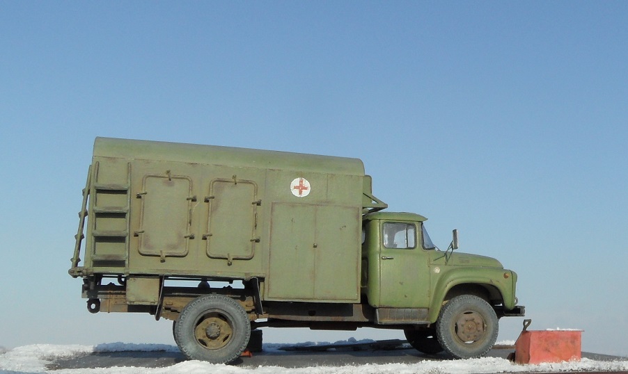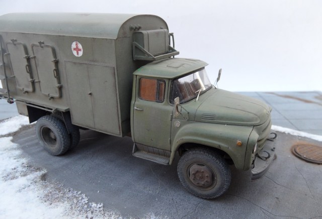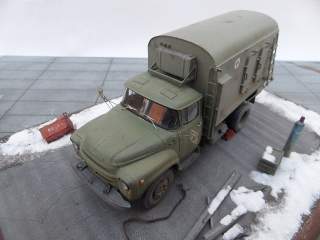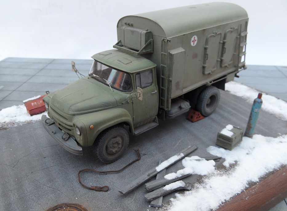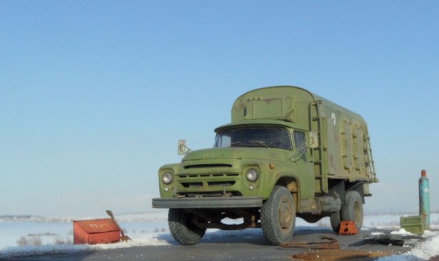Модель - стандартный Зил от AVD Models, из смолы выполнена надстройка-кунг ( лестницы, баки) , отлито все очень качественно, обрабатывается все легко, смола прочная на изгиб. Из доработок травление зеркал от Петроград. Для антуража использовал дополнения из смолы от AVD Models-кислородный баллон, ящик . Окрашена модель из баллона, тонировка пигменты Зип, Тамия, сухая кисть. Приятного просмотра!