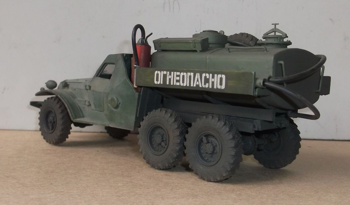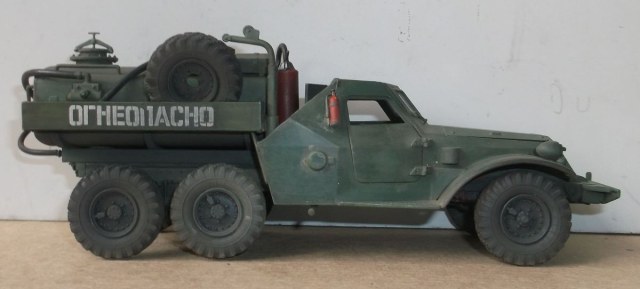 Продуманные мелочи радуют. Но вот особой логики в том что бы ради шасси терзать БТР не вижу. Тот же ЗИЛ 157 намного лучше подошел, тем более бензовозы на его шасси были и в заводском исполнении.