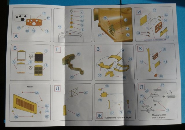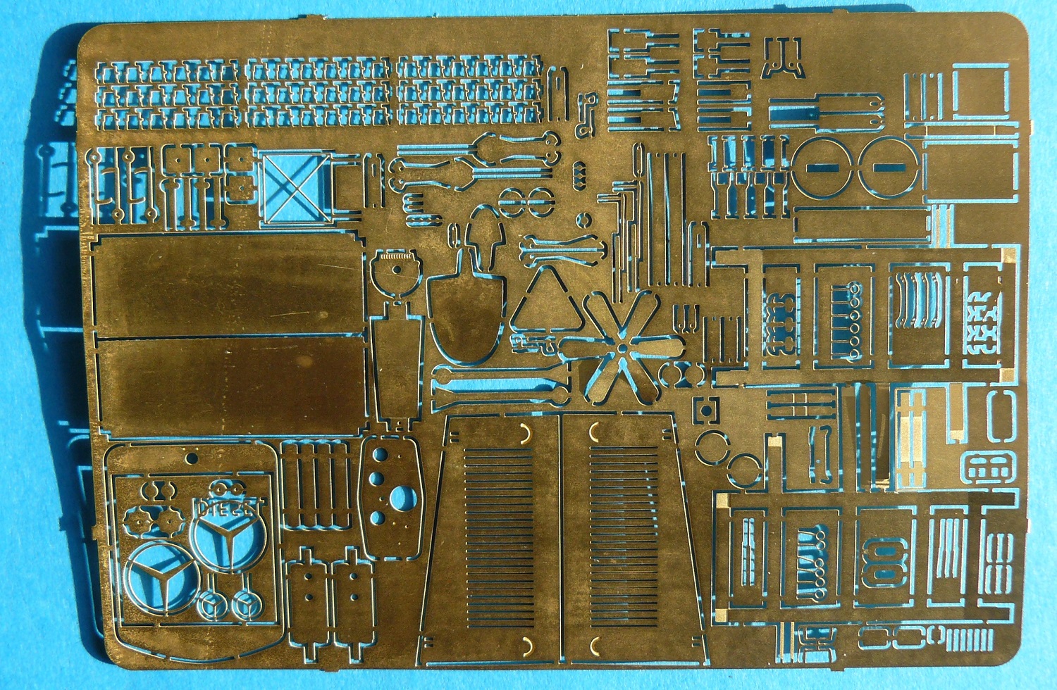 В прошлом году я делал обзор Модели ИСМ Mercedes– BenzL 3000 S. Модель сделана в традиционной для этой фирмы манере является широким полем для доработок и исправлений. На постсоветском пространстве сразу 2 фирмы выпустили наборы фототравления на этот грузовик Vmodelsиз Житомира и Микродизайн из Севастополя. Последнему набору и посвящен данный обзор. Набор состоит из 2 латунных плат толщиной 0.2 мм , прозрачной пленки с напечатанными шкалами приборов и позволяет построить модель с двумя вариантами радиаторной решетки и фирменных эмблем. Каплей дегтя в этой бочке меда является плоская звезда с надписью дизель ,на прототипе она объемная. Простейшим выходом из этого будет вырезать звезду из радиатора модели и сточить на наждачке. Второй гораздо более редкий вариант нареканий не вызывает. Радует что сетка на радиаторе дана правильной -диагональной. Непорадует лубителей открыть капот практически полное за исключением венилятора отсутсвие деталей довольно убого сделанного двигателя. В целом набор особых претензий не вызывает и будет неплохим подспорьем в работе над моделью. Радует так же весьма по нынешним меркам умеренная цена.