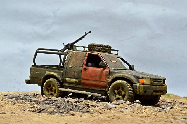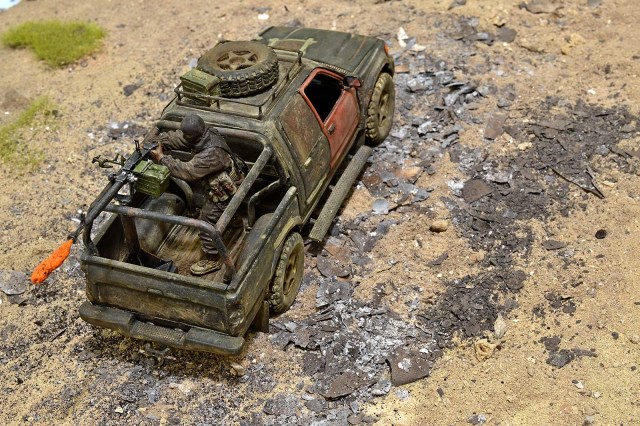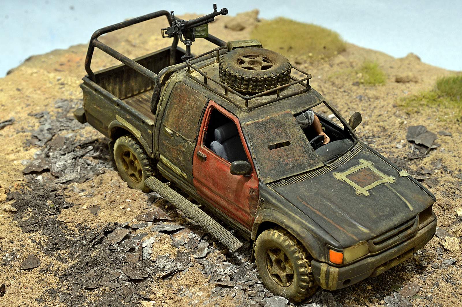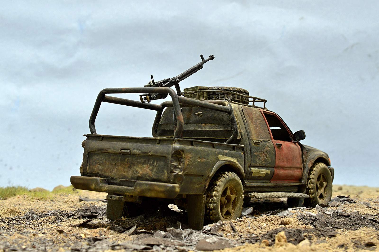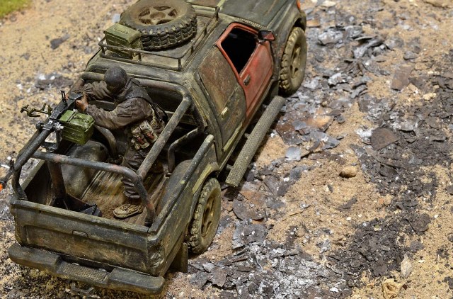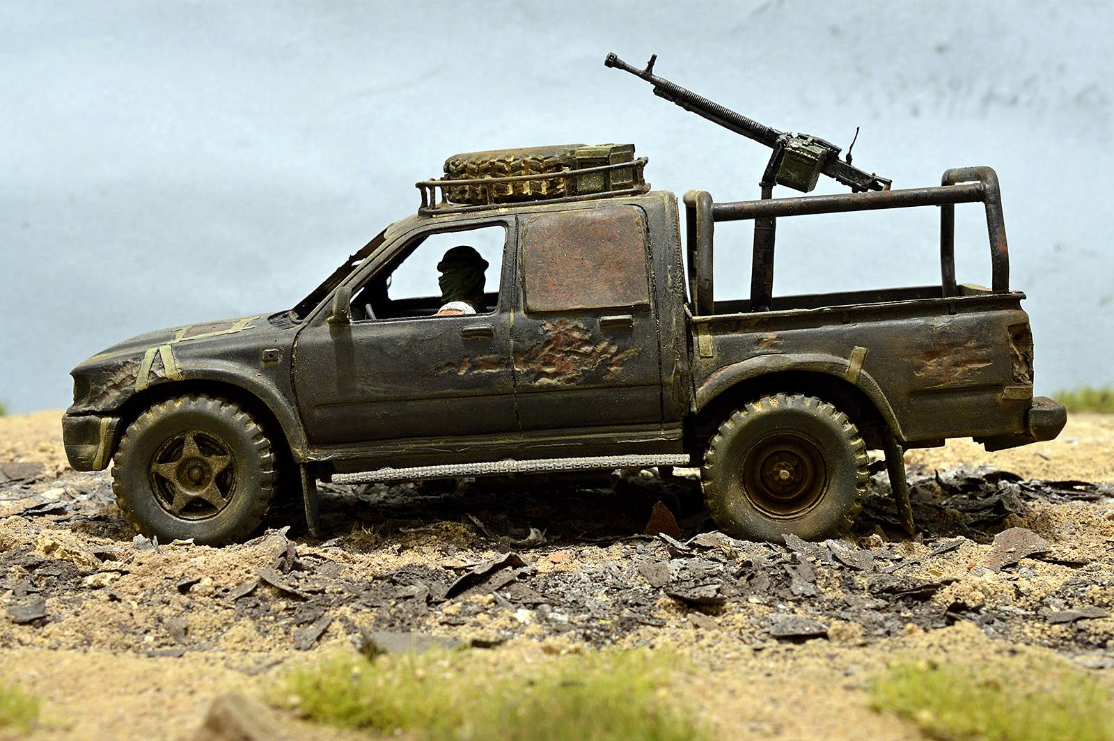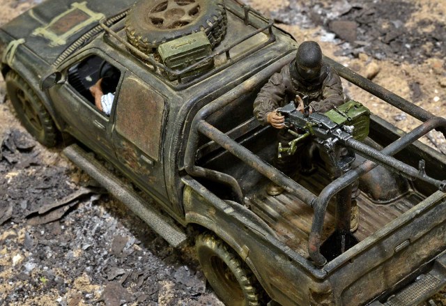 Не понравилась запаска на крыше - протектор какой-то несуразный. Но это, понятно, не к тебе. А вот пламя с ДШК - лучше не делай (или не делай таким) - смотрится, как монтажная пена. Это, конечно, на мой взгляд