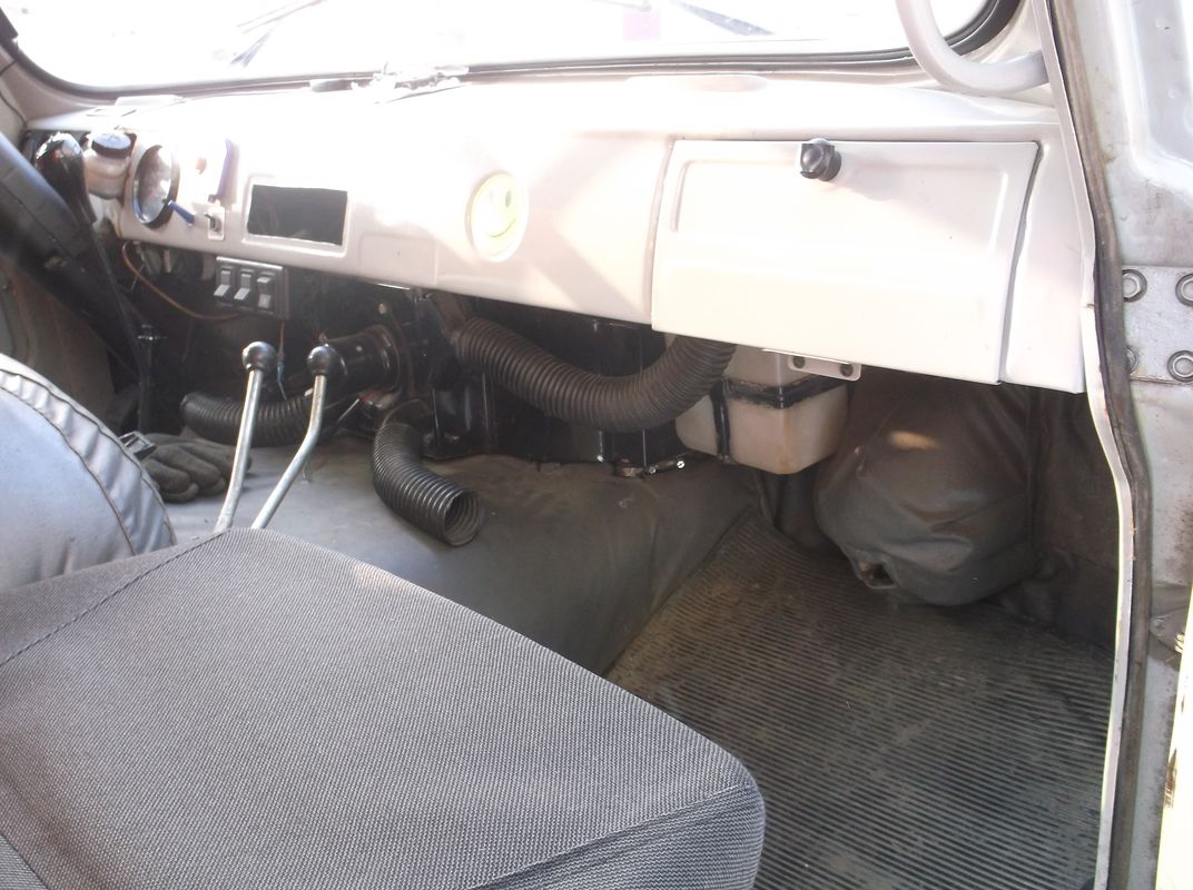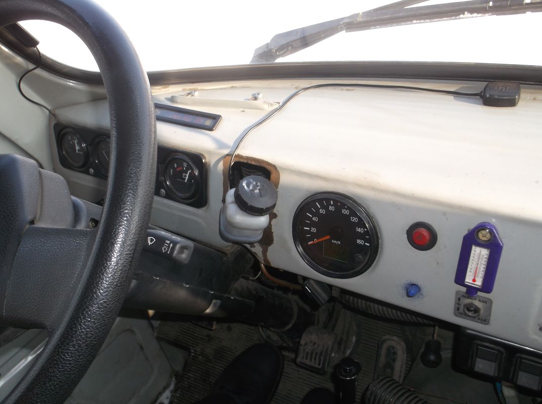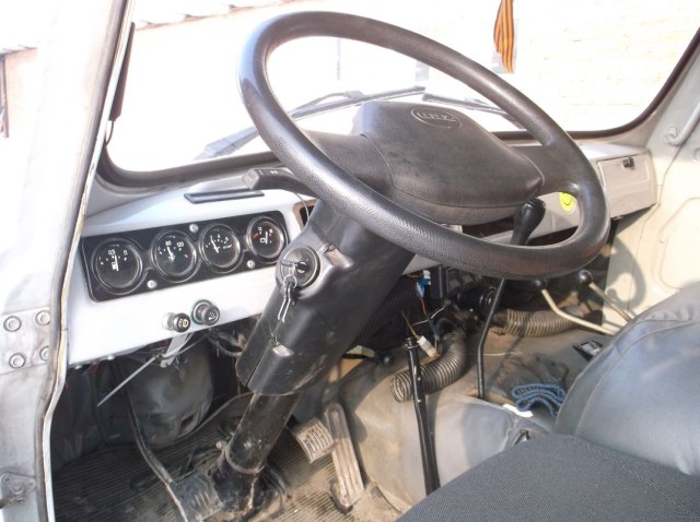А так- у нас более по-колхозному. Сам переделывал салон (сидушки с МАЗов и КАМАЗов 3шт спинкой к переборке присобачил.Меньше прыгать по буеракам). Да и сарай у нас старенький без ГУРа,двиг.402-ой. Течёт точно так же.