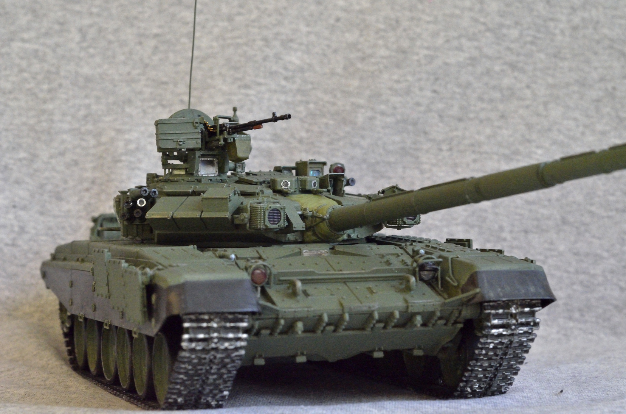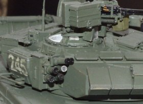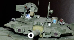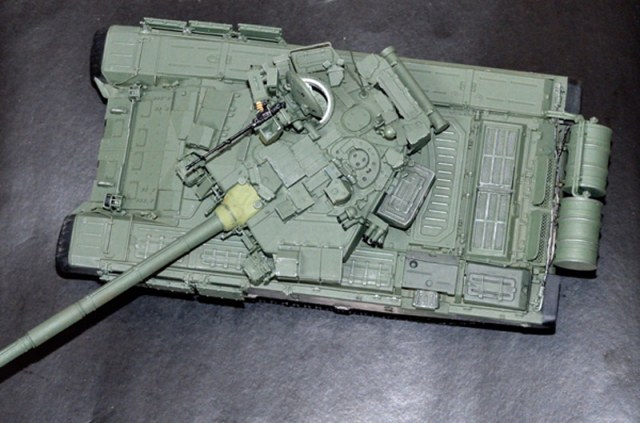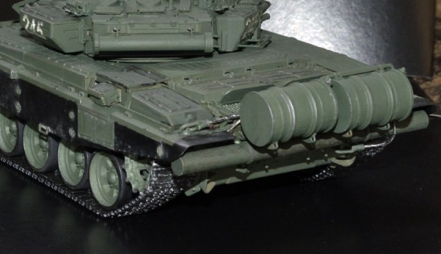 Я постоянно пользуюсь техникой смывки (и даже здесь она присутствует -трос, тепловой отражатель, ящики на башне) но для данной, перегруженной внешними деталями модели, посчитал ее неуместной, танк и так выглядит более чем "обьемным" и увеличивать искусственно глубину его "рельефа" , на мой взгляд не было никакой необходимости.