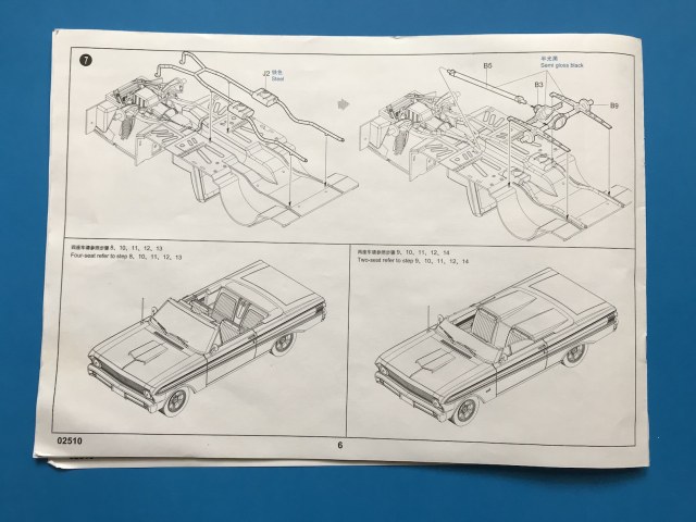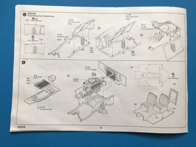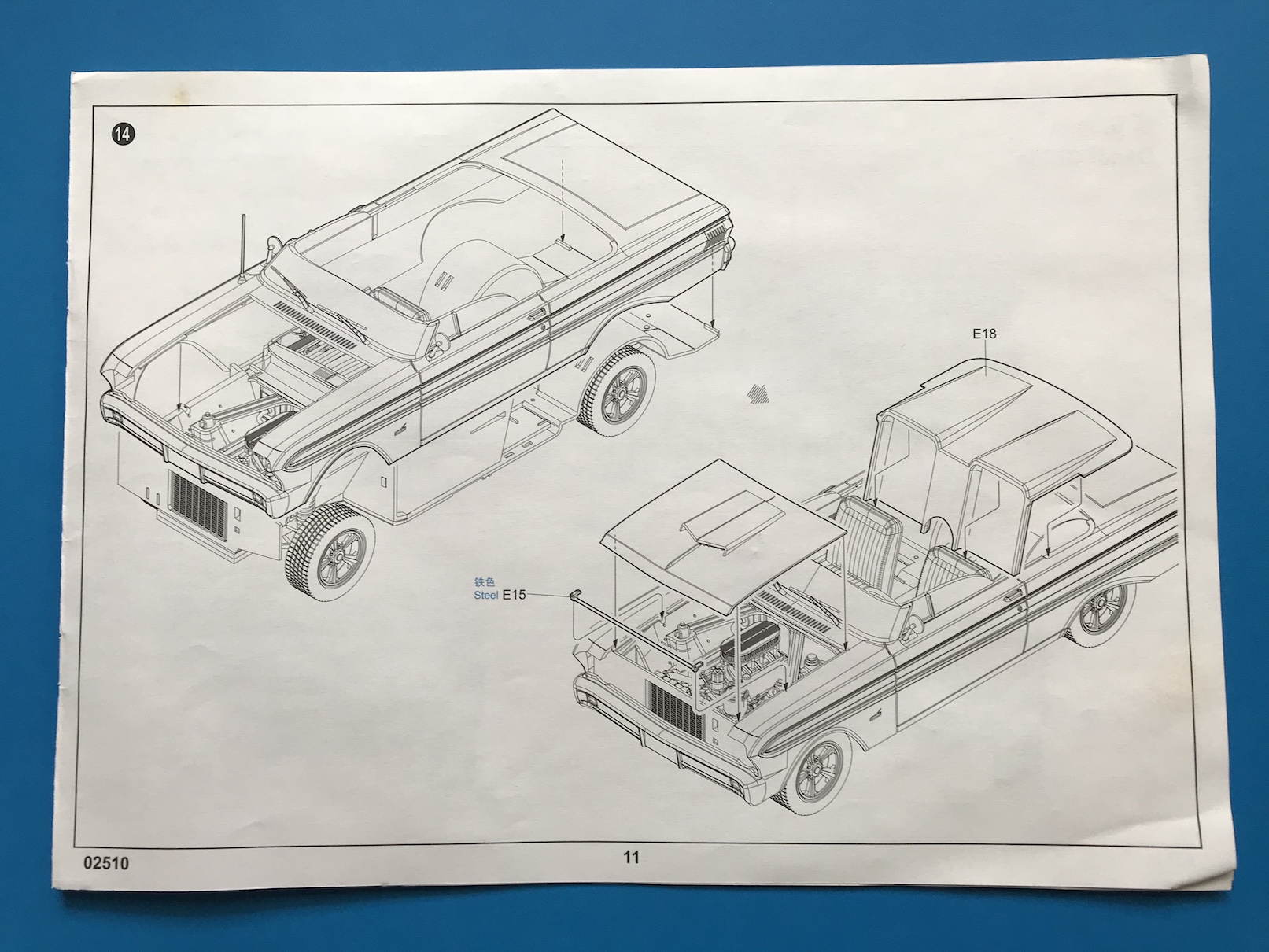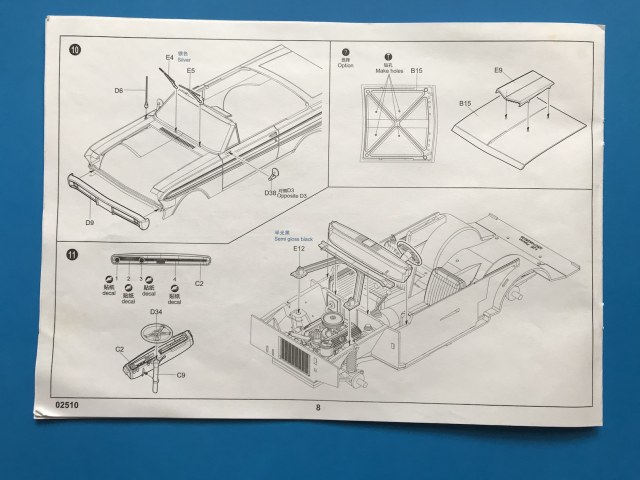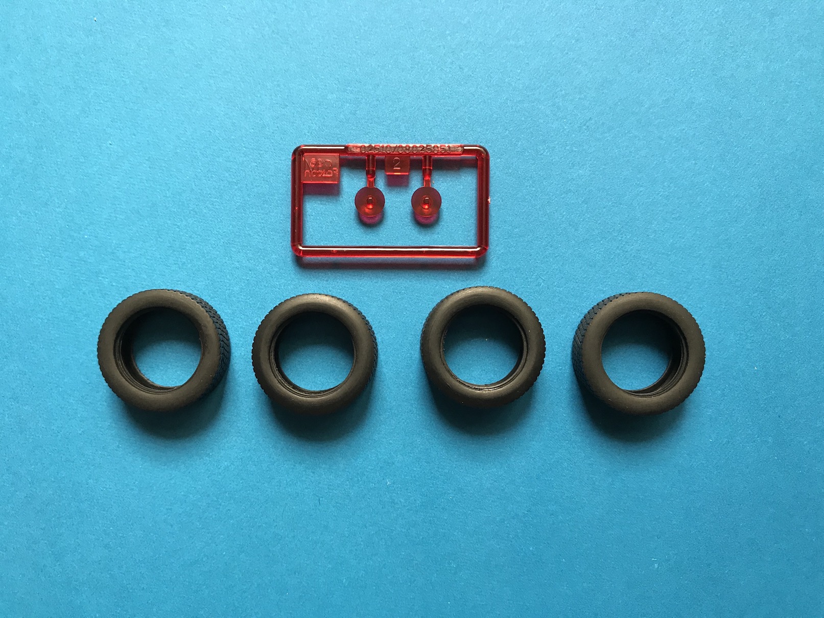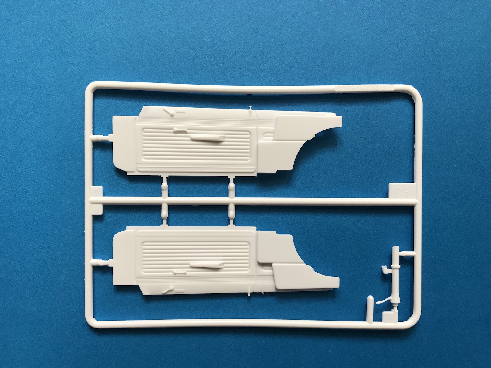 Первое, что бросается в глаза после открытия коробки - огромное количество литников, аж 18 штук, плюс отдельно кузов и шасси. Объясняется это широкой вариативностью сборки модели даже «из коробки». Можно собрать двухдверный вариант, четырёхдверный, с разными вариантами колёс, хромированными или крашенными деталями двигателя и салона. И для всех вариантов в наборе присутствуют готовые детали - карты дверей, диски, различные детали двигателя и салона, сидения и всё прочее. И даже цвет краски для многих деталей не указан - как хочешь, так и крась. Меня така вариативность очень впечатлила.