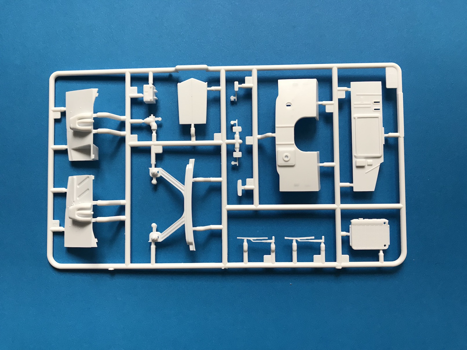 Модель, как я понял из надписей на коробке довольно старая, но качество литья на очень неплохом уровне. Облоя, утяжин и прочих «прелестей» на литниках при осмотре не обнаружено. Кузов также отлит очень хорошо, правда немного смутили очень широкие и глубокие для такого масштаба линии расшивки. Пока не разбирался так и должно быть или придётся шпаклевать и делать новые.
