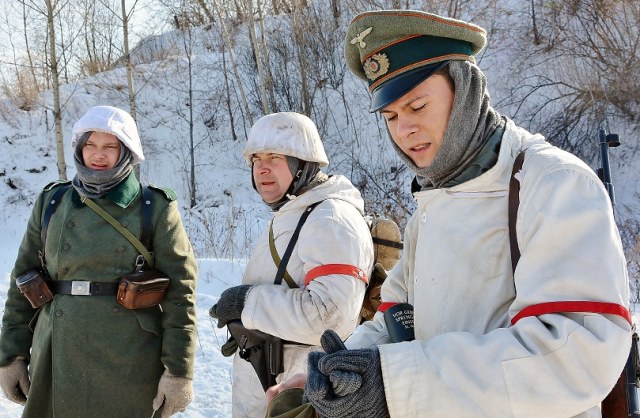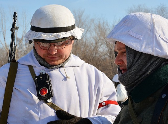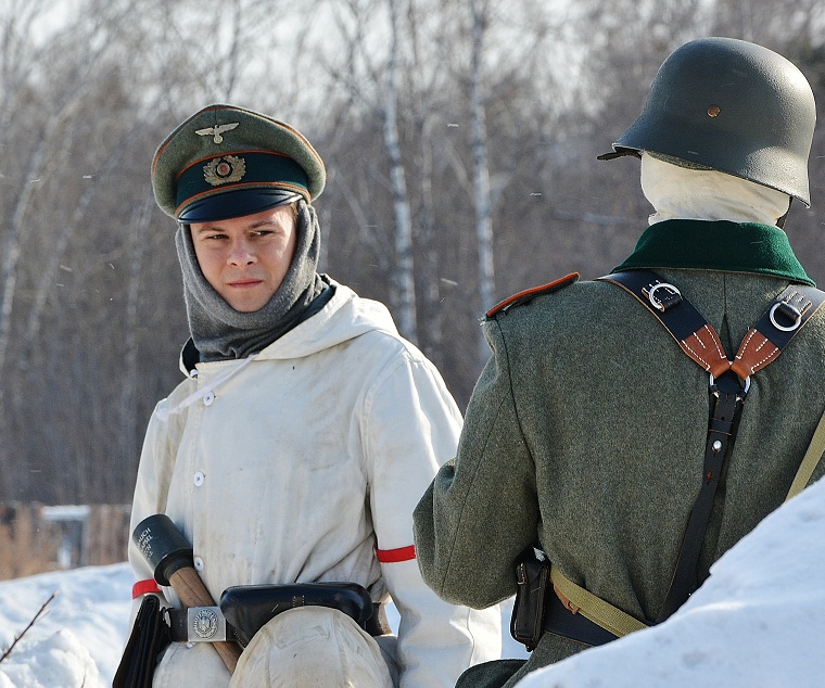 Александр, тут еще веселее веселуха. На той фотке где бойцы лежат, это "прогон", репетиция. И молодой немец в фуражке (я его условно для себя назвал Герр Шмульке) обходит бойцов и поздравляет их с днем Советской Армии, с 23м февраля. Руки пожимает. Такой вот сюрреализм. :-) Если хочется посмотреть "чистые" фоты, исторически-обусловленные и почищенные фотошопом от разных современных артефактов, то я давал ссылку. Там все чики-пики. Ни сотиков, ни коптеров. Я же показываю не режиссированный сюжет, а т.с. "деловые будни", "орг. вопросы и подготовительные нюансы". Красноармейцы с айфонами тоже смотрятся забавно, в каком то смысле. :-)