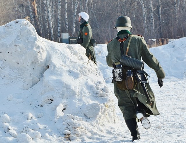 В этот раз было меньше эффектных ба-бахов, да и немцев набралось не много. Пиротехники и самые "оголтелые вермахтовцы и ССовцы" уехали в Новосибирск, там проходила грандиозная Сталинградская Битва. (Это вполне нормально, Сталинградская Битва в Новосибе). :-)))) С девушками-санитарками тоже была напряженка. А вот "сыновей полка" аж три штуки...