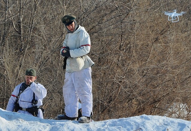 Фотка с коптером... Да разве ж не прикольно вышло? Разумеется на "боевых" фотографиях коптер заретуширован, от него и следа не осталось. А на этих "жанровых сценках" как бы происходит такой диалог. Пара мордатых гансов - этакие Дранкель и Жранкель и с ними Шмульке: