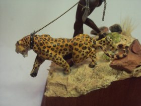 Благодарю Вас за отзыв. Возможно,что данная композиция создана на тему африканской мифологии. Например, в племени тсвана есть легенда о девушке,которая вышла замуж за леопарда-оборотня Ириму. Но скорее всего,это охотница из племени экои из Камеруна. Тотемным животным экои был леопард. Доктор Мансфельд,исследователь Африки, утверждал что лепарды не просто являлись предметами поклонения для племени, но и вполне реально помогали им охотиться и сражаться с врагами.