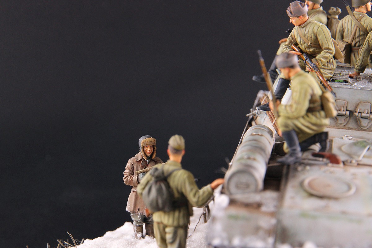 Работа понравилась! Отлично! Скатку можно было бы оживить самоделом. Фигурки некоторые сидят не очень "удобно", но по себе знаю, что усадить их по-настоящему очень проблемотично. В целом это ничего не протит. Холодно и реалистично!