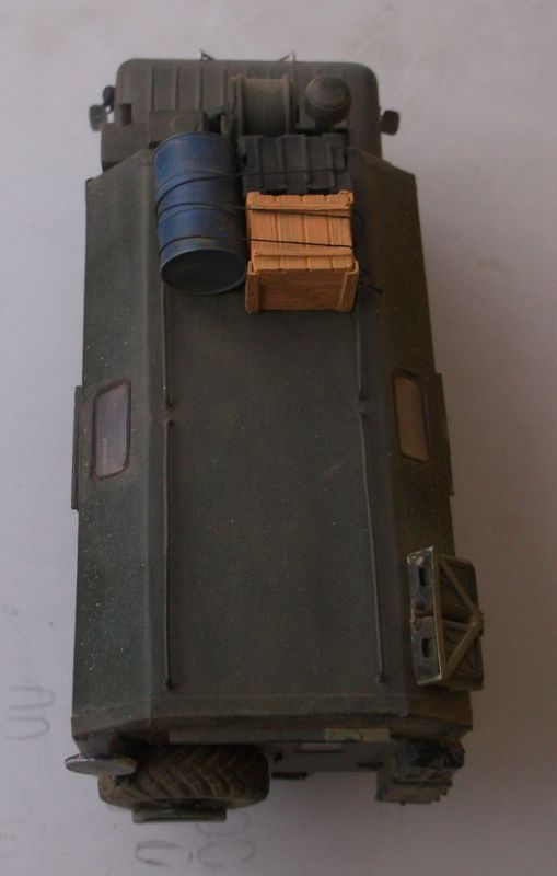 Прошу простить, с машинами химразведки дел не имел, связист, но вот на всех радиостанциях, смонтированных в кунгах, на крышах крепились в транспортном положении части мачт и масса ещё чего, и всегда была лестница для доступа на крышу. И лестница именно постоянно закрепленная была, не упрятанная в кунг. А в этом варианте как?