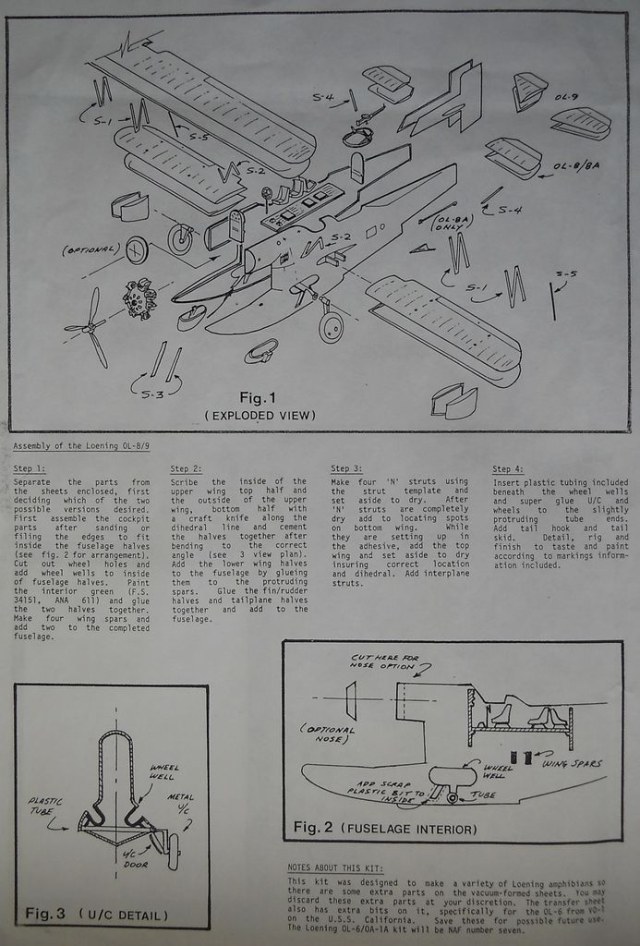 Вакуумформованная модель от фирмы Esoteric Models упакована в полиэтиленовый пакет. Масштаб 1/72 (номер по каталогу NAF-3). Основные детали отформованы на двух листах пластика с весьма неплохой проработкой. В наборе присутствуют деталировка из белого металла и профили из пластика. Профили недостаточно жёсткие и потребуют замены. Козырьки кабины предполагается изготовить самостоятельно. В модель заложена возможность сделать на выбор модификацию OL-8 или OL-9. Декаль на три варианта самолёта. Инструкция по сборке дана на «удовлетворительно» и отличается малой информативностью.