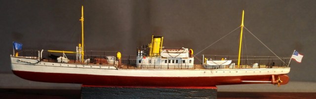Добрый вечер,товарищи. Спешу представить Вашему вниманию одну из последних моих работ-опытную канонерскую (или как её ещё называют «динамитный крейсер») USS Vesuvius. Этот интересный корабль служил с 1890 года по 1921,хотя,если быть точным,то его служба состояла из двух этапов. Первый этап (1890-1898) он прослужил в качестве «динамитного крейсера» с вооружением из трёх пневматических орудий,а второй этап (1905-1921) уже в качестве торпедного испытательного корабля после переоборудования,в ходе которого с него сняли пневматические орудия и установили четыре торпедных аппарата. На слом отправили в 1922 году. У меня модель построена ориентировочно на 1898 год.