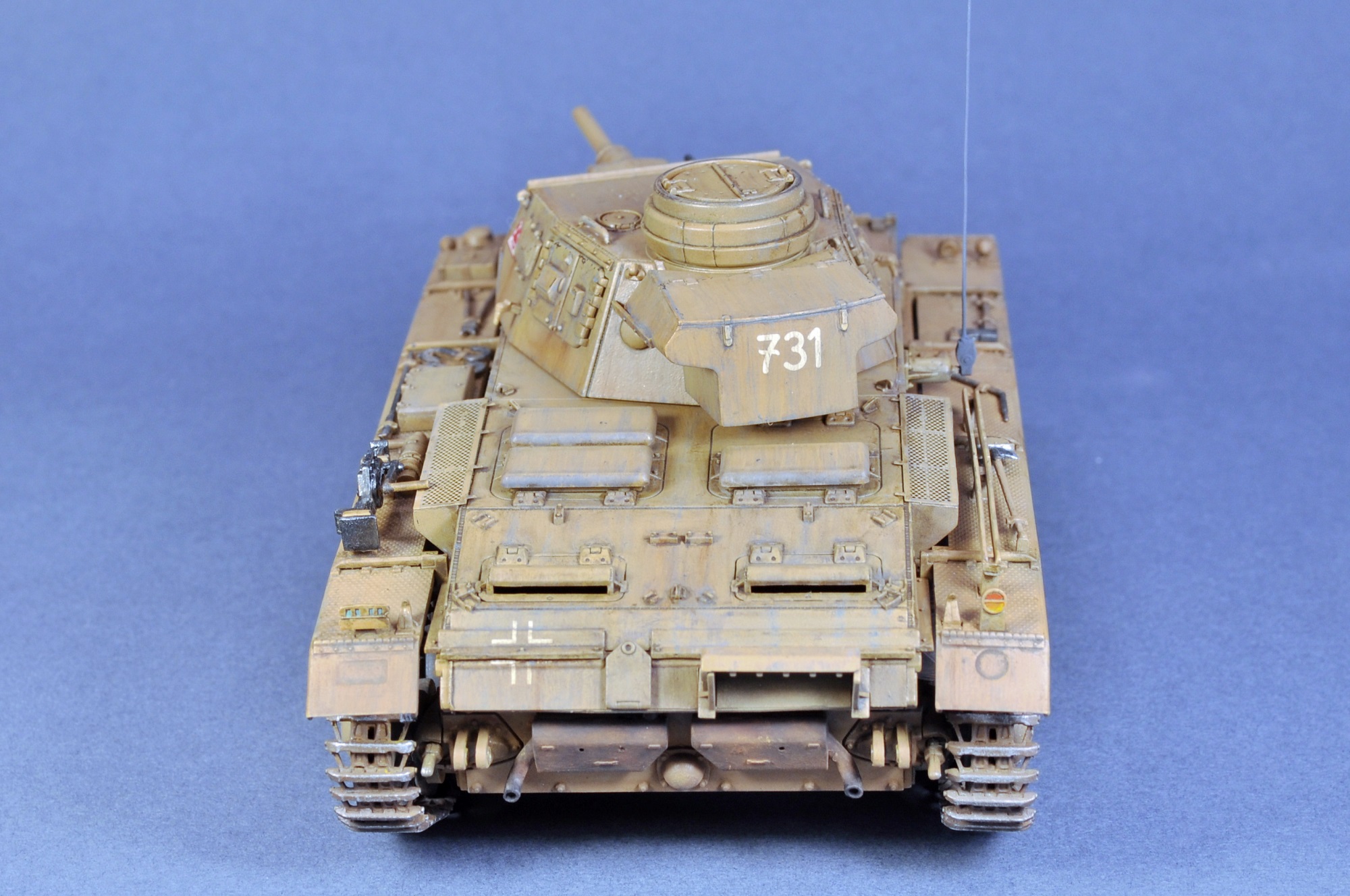 И опять черный глянцевый домкрат. Смотрится не как часто используемый инструмент, а как украшение, при этом поддомкратный брус выглядит не как самостоятельная единица, а монолитная часть танка. Попытка замазать чем-то следы толкателей на маске неудачная. Щели в некоторых местах (в частности на башне) неплохо было бы заменить на сварные швы. Почему антенный ввод вместе с антенной серого цвета? Первый раз вижу серую смывку на желто-коричневой базе, совсем не смотрится. И что это за кружочки с полосочками по бортами?