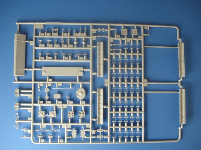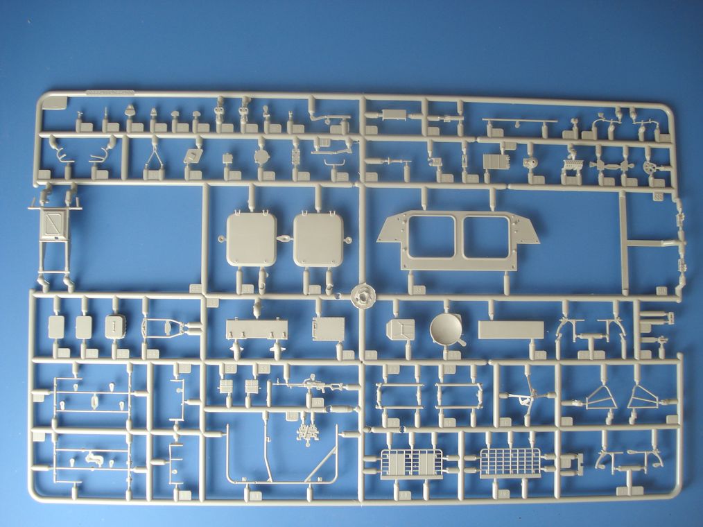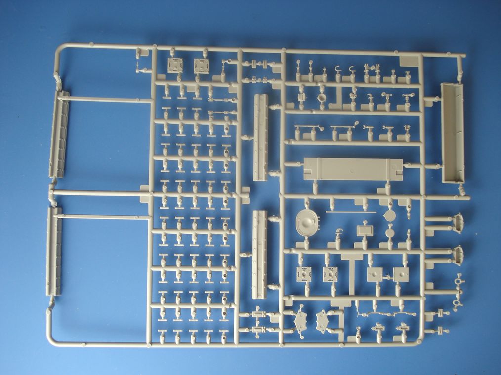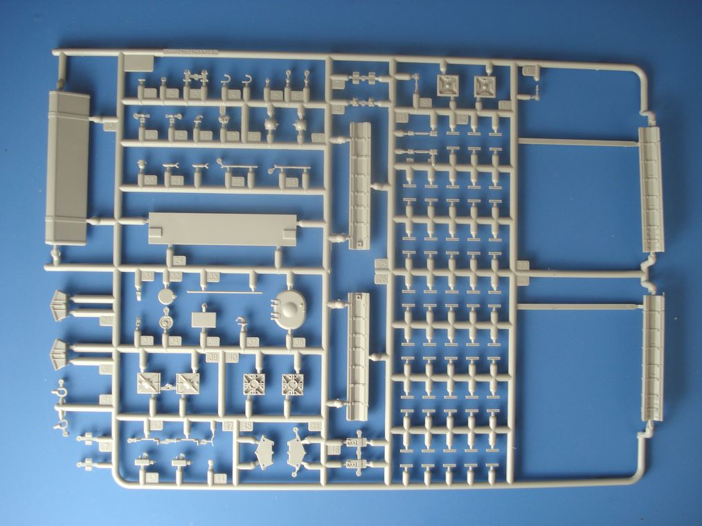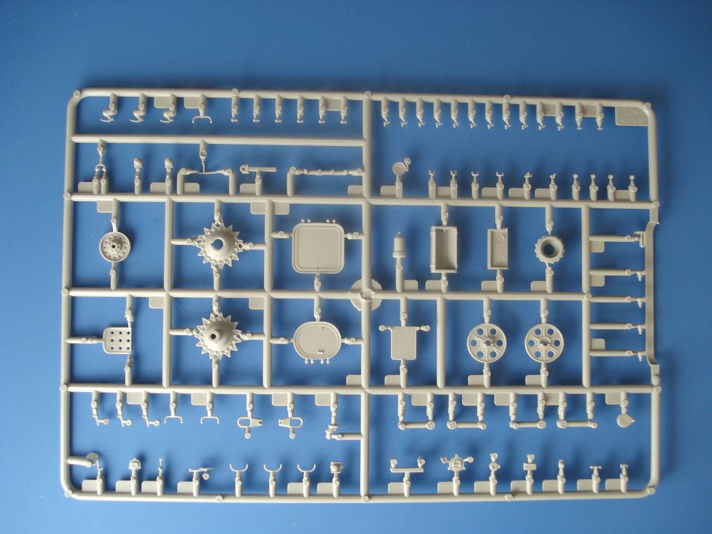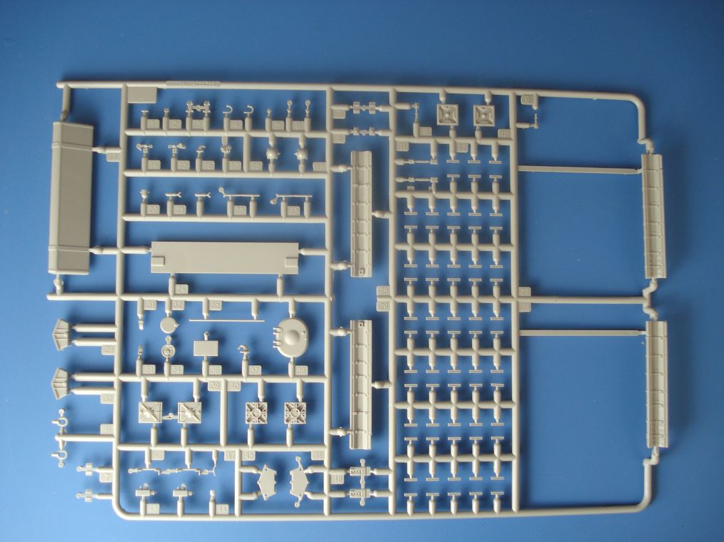 Модель от Trumpeter(как наверное и все последние модели данной фирмы) просто отличная(на мой взгляд)качественный хорошо отлитый пластик серого цвета,трос металлический,2 платы фототравления,прозрачные детали,наборные траки,декаль (мелочь но и то встречается не у всех производителей на последних моделях).
