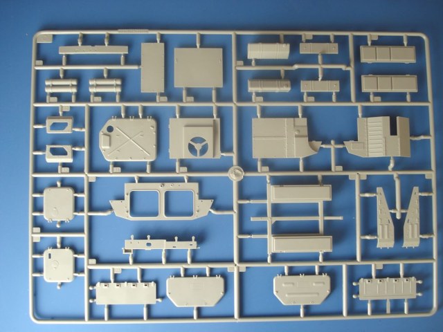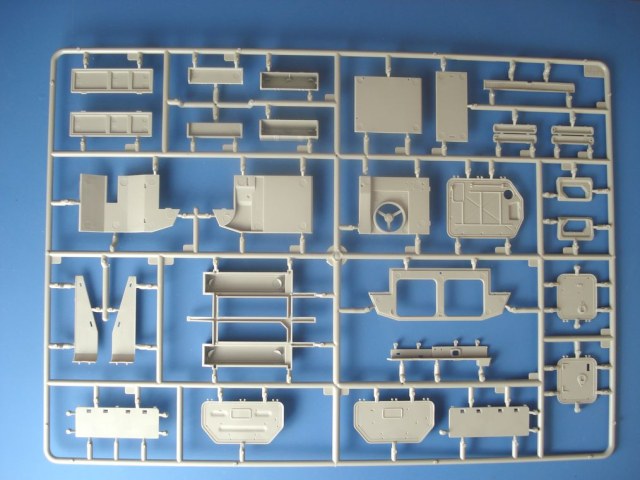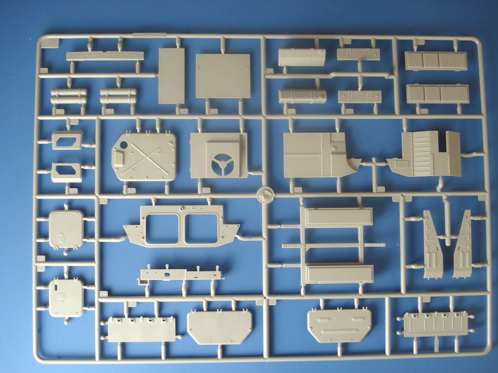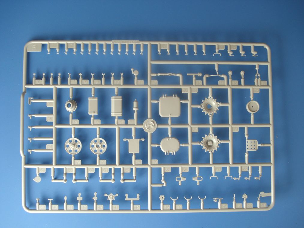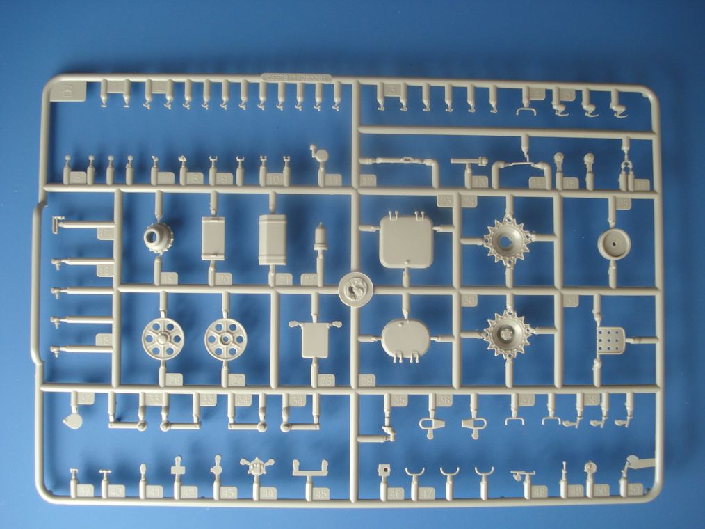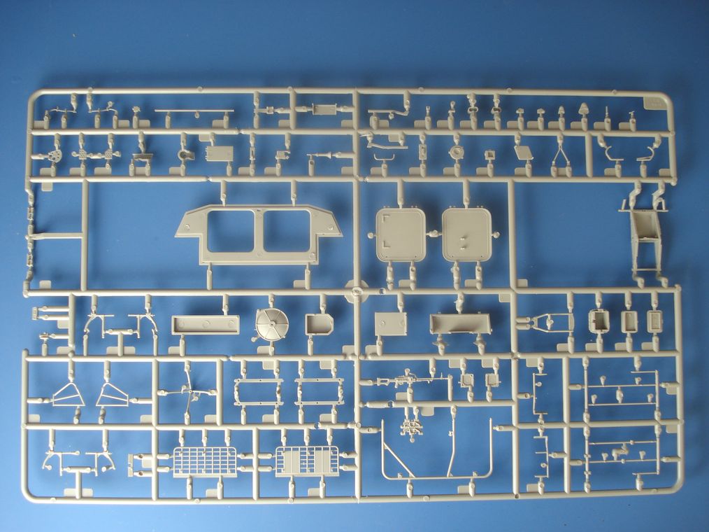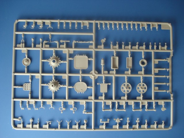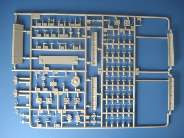 Модель от Trumpeter(как наверное и все последние модели данной фирмы) просто отличная(на мой взгляд)качественный хорошо отлитый пластик серого цвета,трос металлический,2 платы фототравления,прозрачные детали,наборные траки,декаль (мелочь но и то встречается не у всех производителей на последних моделях).