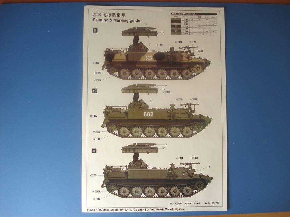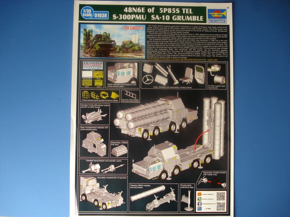 Представляю модель от Trumpeter ЗРК Стрела-10 основной задачей которого является прикрытие танковых и механизированных подразделений на марше и поле боя на малых высотах.Комплекс Стрела-10 размещается на гусеничном шасси много целевого тягача МТ-ЛБ,что позволило увеличить боекомплект до восьми ракет в транспортно пусковых контейнерах четыре на пусковой установке,четыре внутри тягача.В отличие от ЗРК Стрела-1,9К35 может обстреливать более скоростные цели,на более дальних дистанциях с большей вероятностью поражения,в условиях оптических и радиолокационных помех.Кроме ракет на установке для самообороны установлен пулемет ПКТ,перезарядка ракет производится силами экипажа из трех человек в течение трех минут.В состав батареи Стрелы-10 также входит ЗРПК Тунгуска