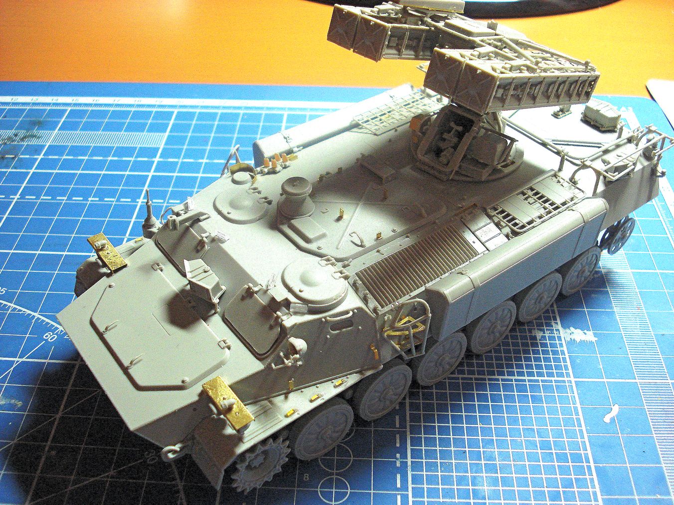 Отличная модель,достойная замена модели от Стрела-10 от Скиф,единственный минус(опять же на мой взгляд) отдельные гребни траков клеить и клеить,хотя кто собирал БМД от Panda,или БМП-3 от того же Trumpeter этим не остановишь.