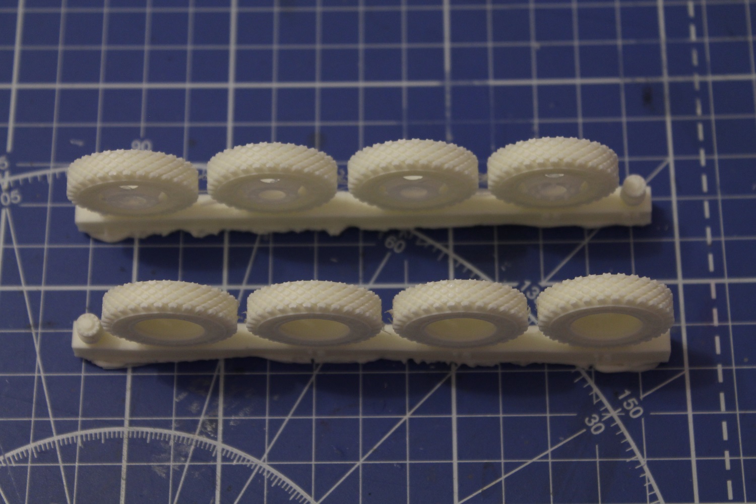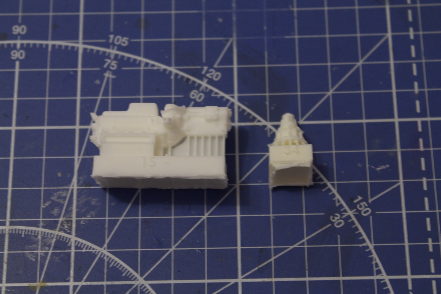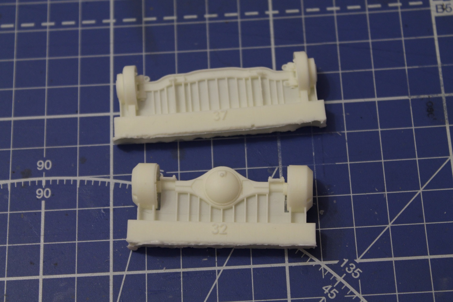 6) Литники с элементами и частями автомобиля - отлиты из почти белой полиуретановой смолы. Я насчитал 37 литников. Есть небольшой облой, но это не критично. В остальном не обнаружил пузырей, раковин, поведенностей и прочих смещений.
