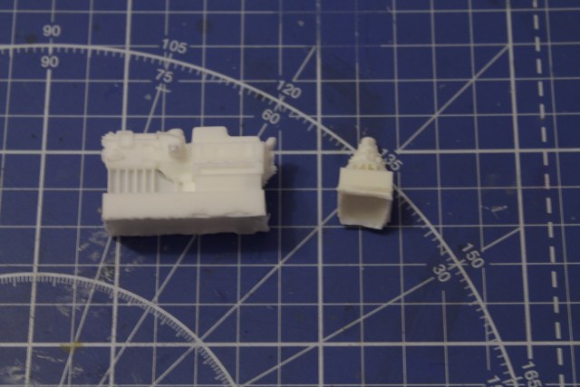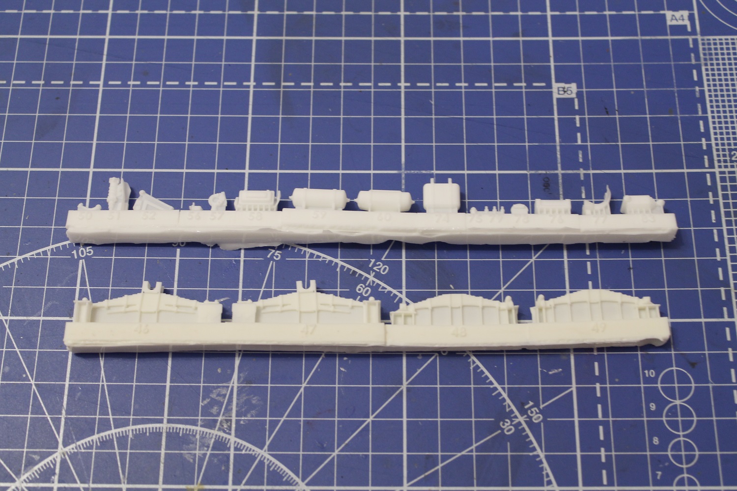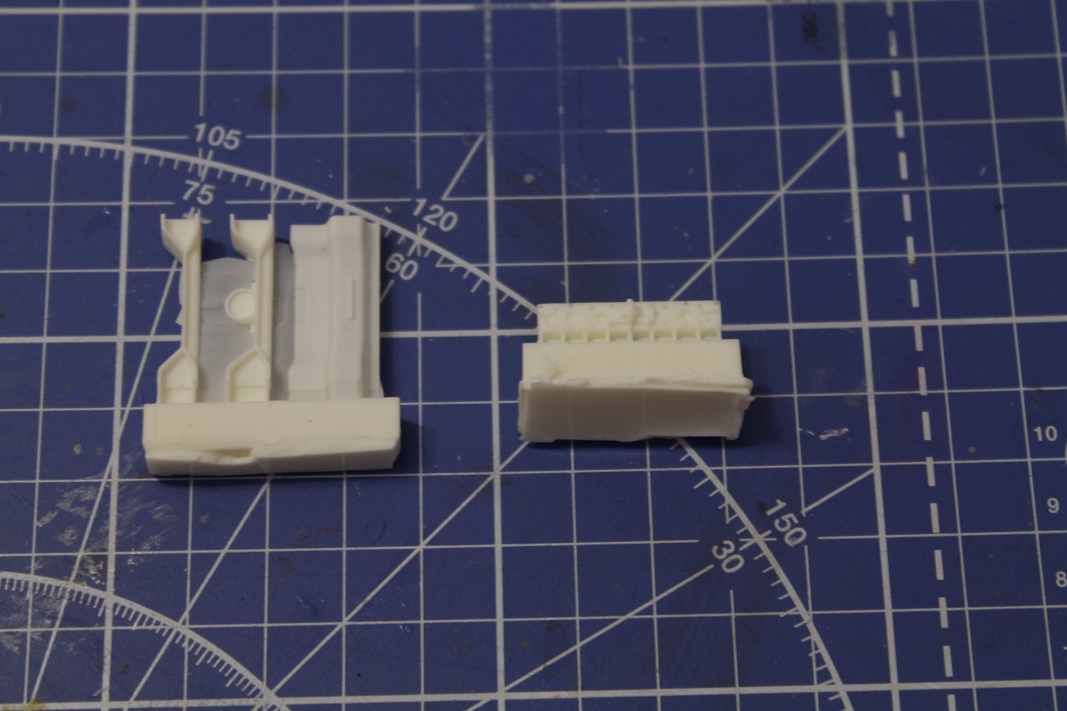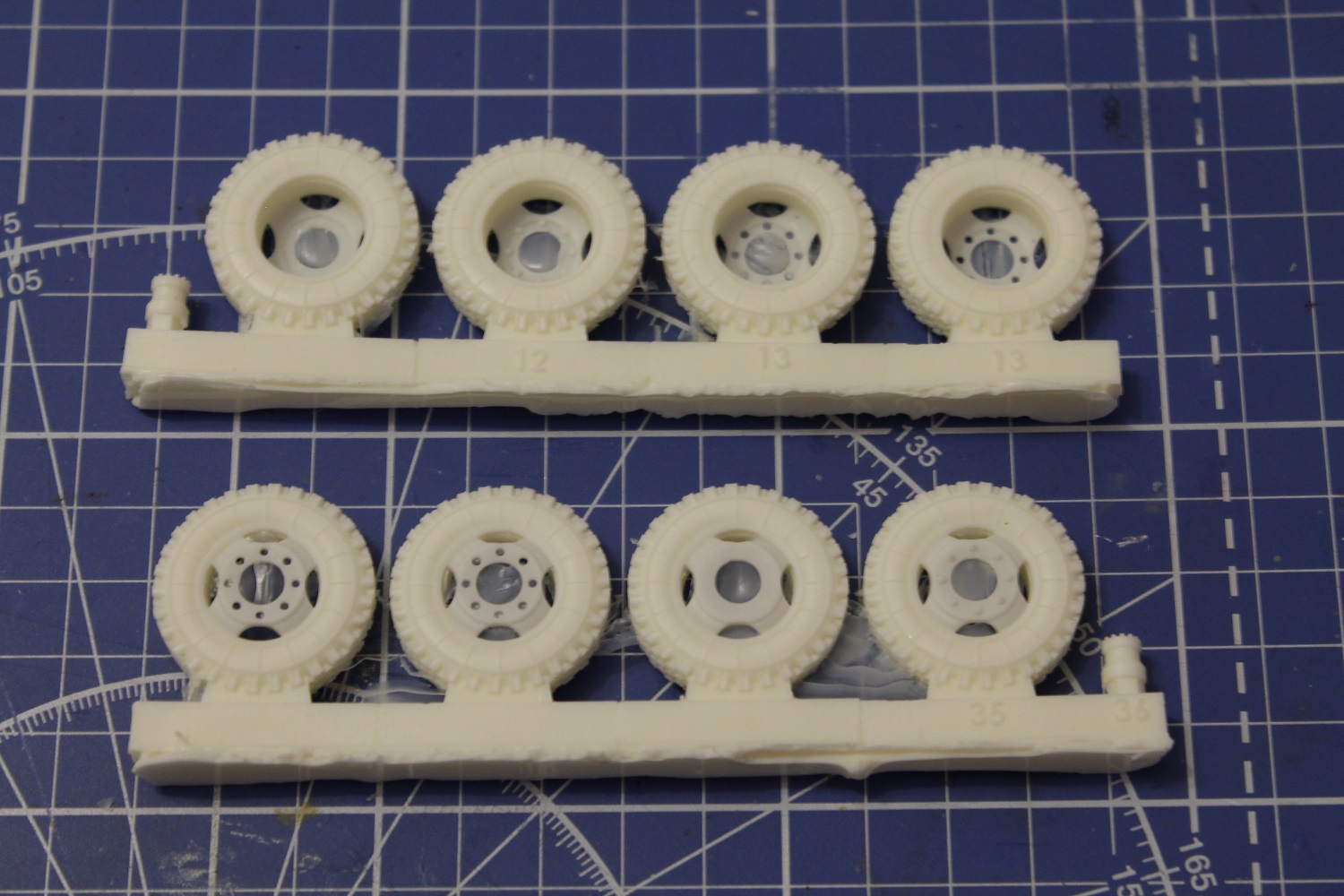 6) Литники с элементами и частями автомобиля - отлиты из почти белой полиуретановой смолы. Я насчитал 37 литников. Есть небольшой облой, но это не критично. В остальном не обнаружил пузырей, раковин, поведенностей и прочих смещений.