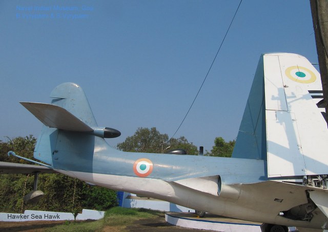 Hawker Sea Hawk, бортовой номер IN234, произведен в Англии в 1960 году. Эти истребители были закуплены для комплектации авианосца INS-Vikrant, и прослужили более 20 лет, прежде чем были заменены на более современные «Си Харриер».