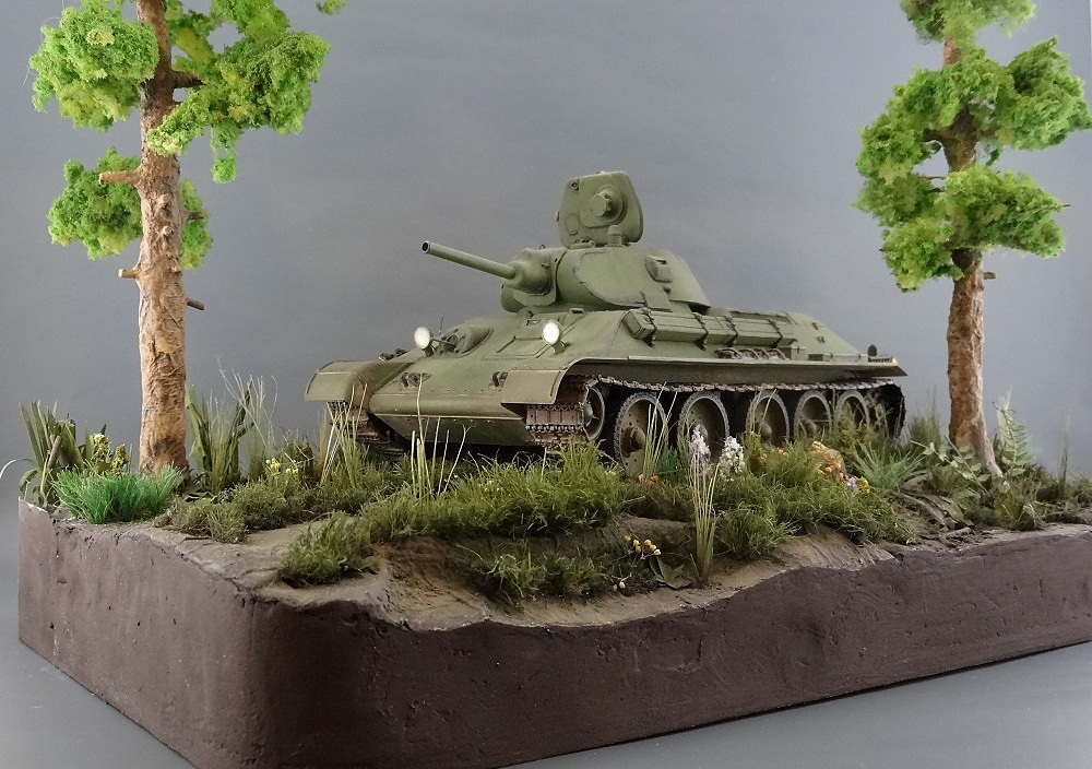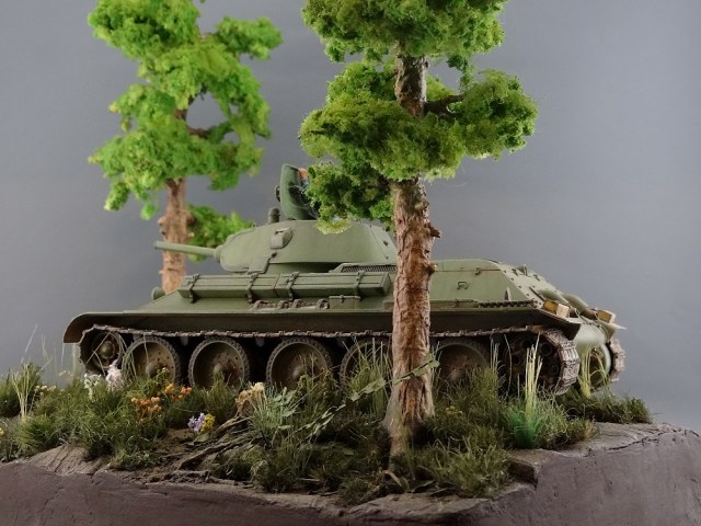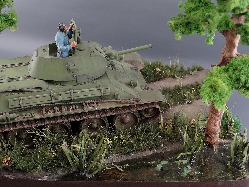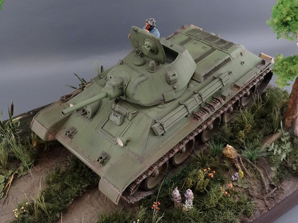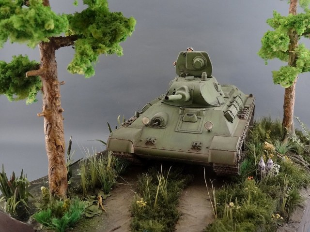 Александр, привет! Мне все понравилось! Потому как это не просто демонстрация одной модели, а целая композиция с другими элементами типа растительности, дороги и т.д. Их не каждый умеет мастерски сделать. У тебя и самый главный элемент (тридцатьчетверка) и остальные получились очень удачно! Единственное, если композиция "возвращение", уместным где-нибудь на дереве, или на обочине разместить указатель-стрелку "Стрельбище, 5 км", которая бы показывала, что танк движется в обратном направлении.
