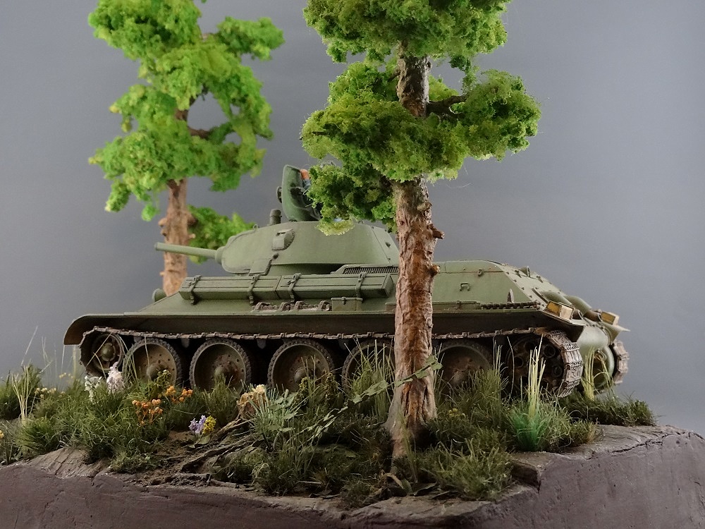 Здравствуйте-про то что сосна не растет на болте знают единицы)а вот то что смотрится очень живой работа так это факт-может и есть какие то огрехи по мат части. и то что дорога такая-это может первый танк в колонне и ком танка как раз и осматривается осторожно-вообще требую его тут и оставить)