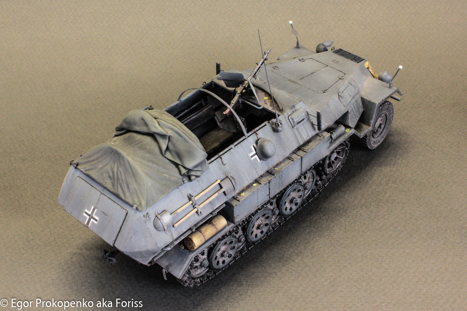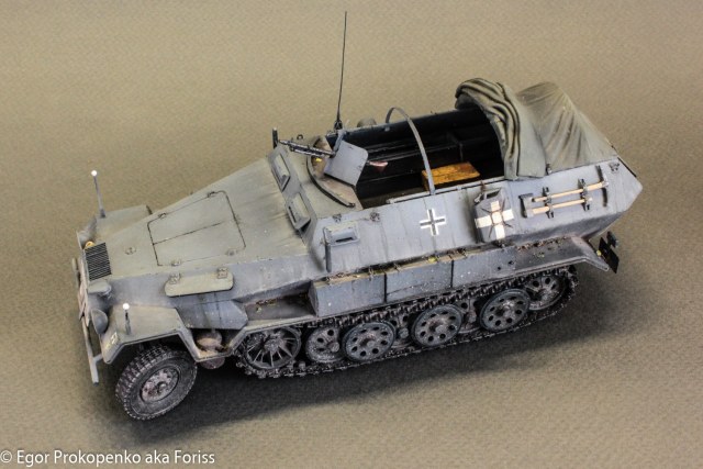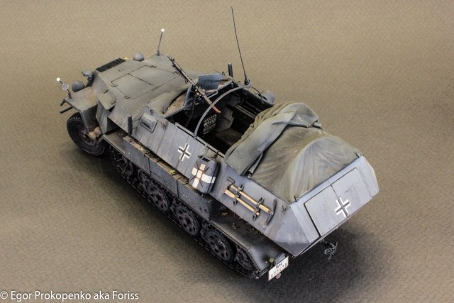 Исполнено классно, все в тему - тент, скатки, мелочевка, ящики очень реалистичными получились. Могу ошибаться, но судя по рации и антенне в наборе это не машина связи, а основная серийная модель - 251/1 B???