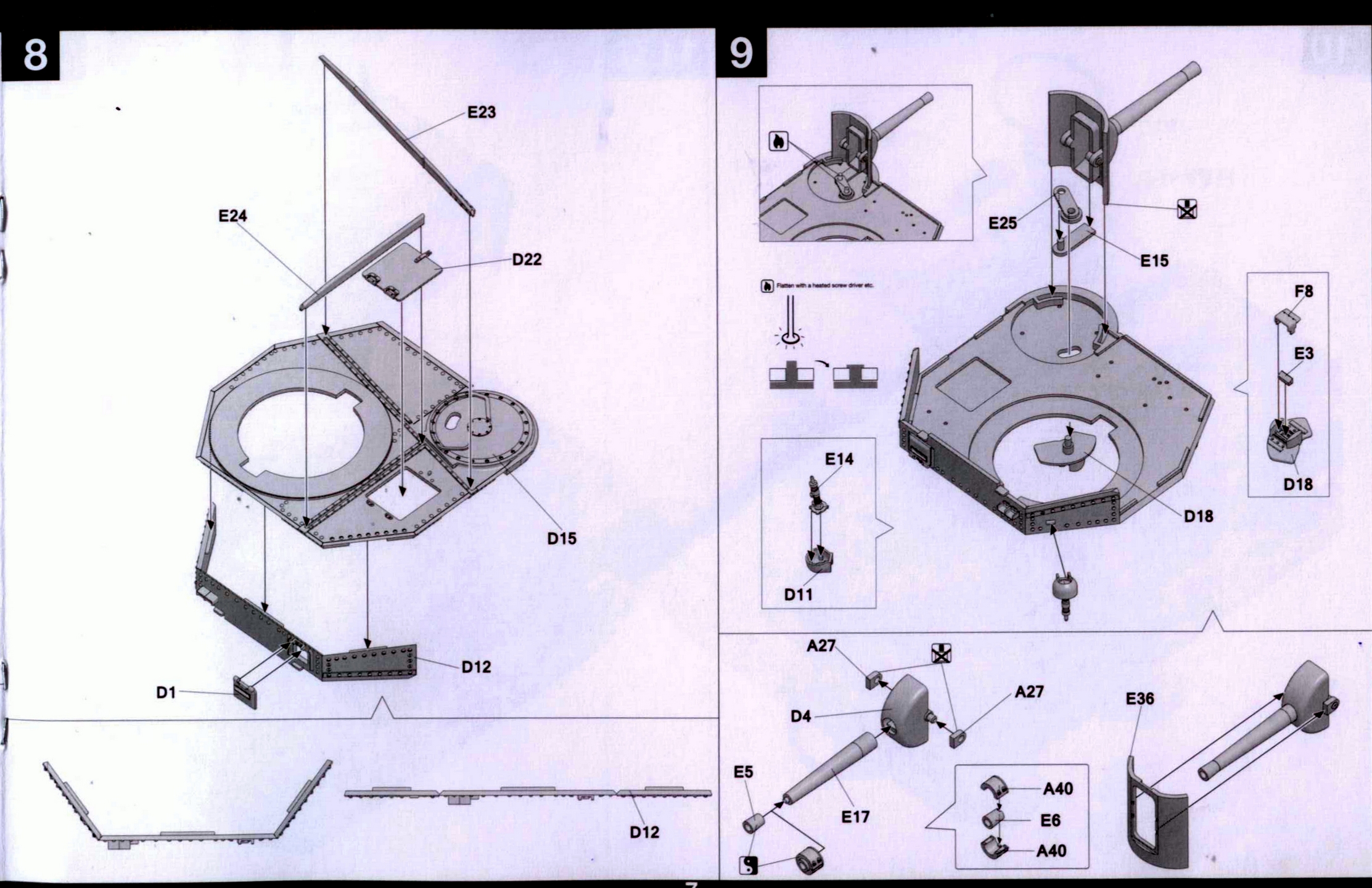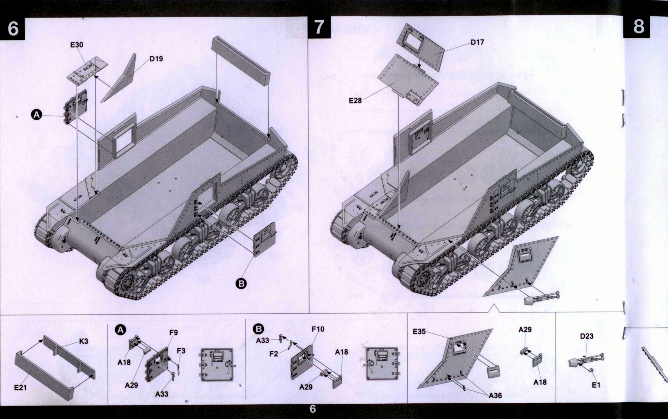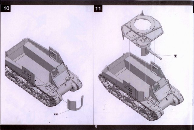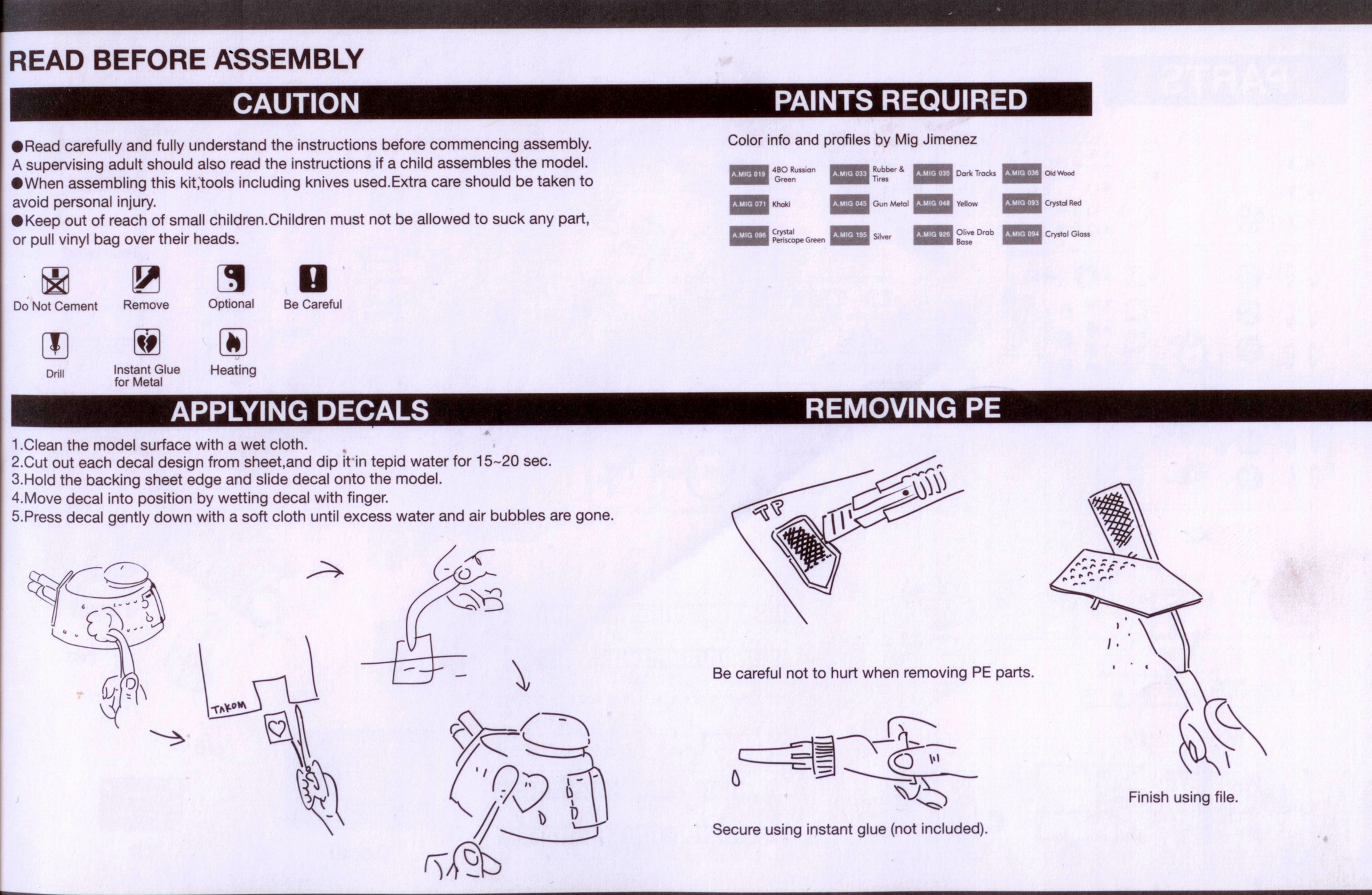 Аккуратная небольшая книжечка, тут тебе и варианты окраски в цвете и поэтапная сборка модели отлично напечатана, подзборки не перегружены множеством деталей, вообще членение достаточно подробное, но без фанатизма, как у Дракона или Тристара. Бумага добротная как в хорошем журнале. Вариативность не зашкаливает, нам предлагают закрыть фары чехлами, или не делать этого, и прицепить на ствол пушки противовес на этом все. Траки полунаборные, и для формирования провиса есть шаблон.