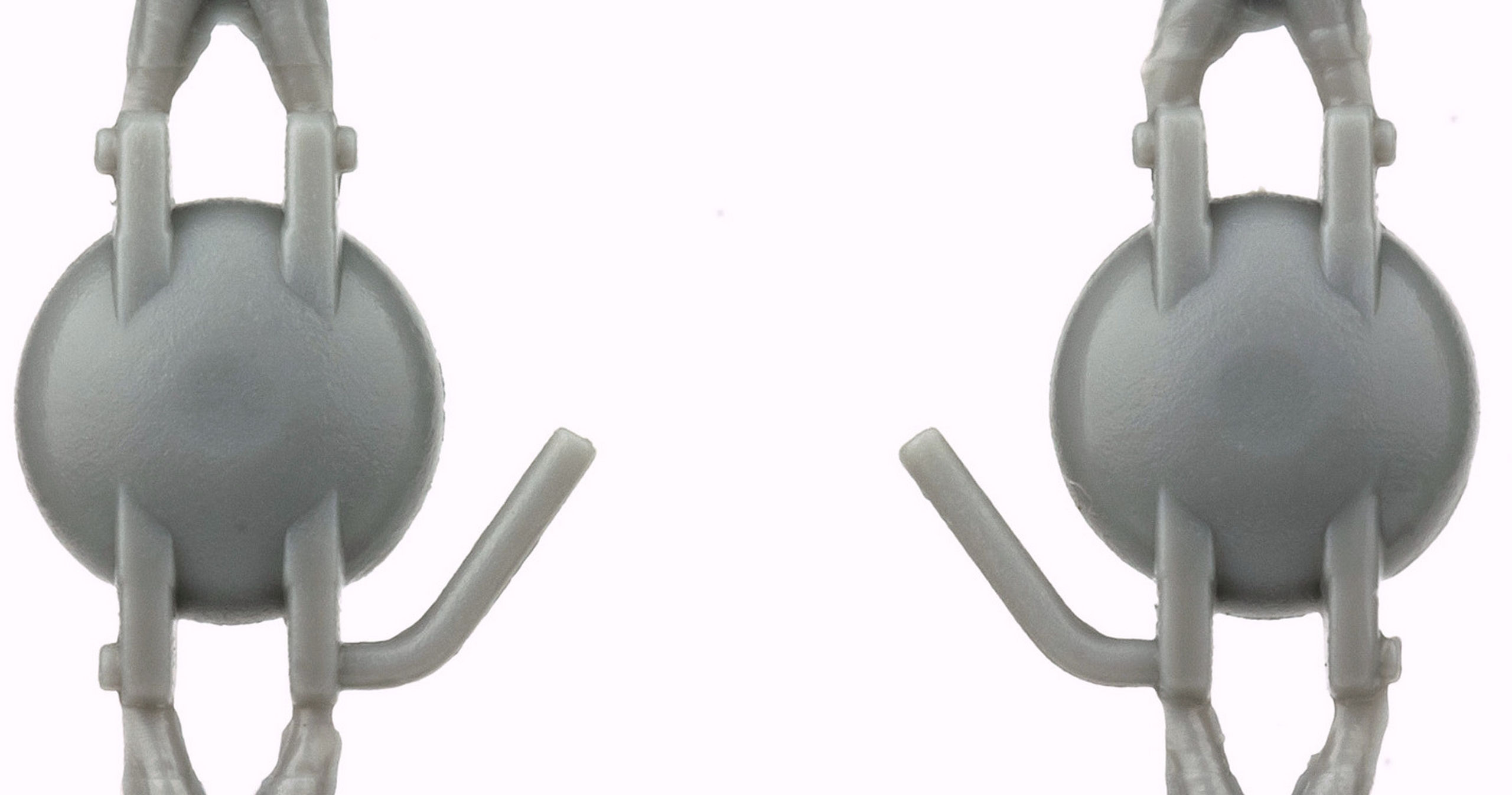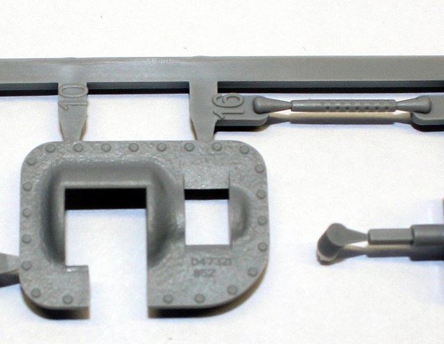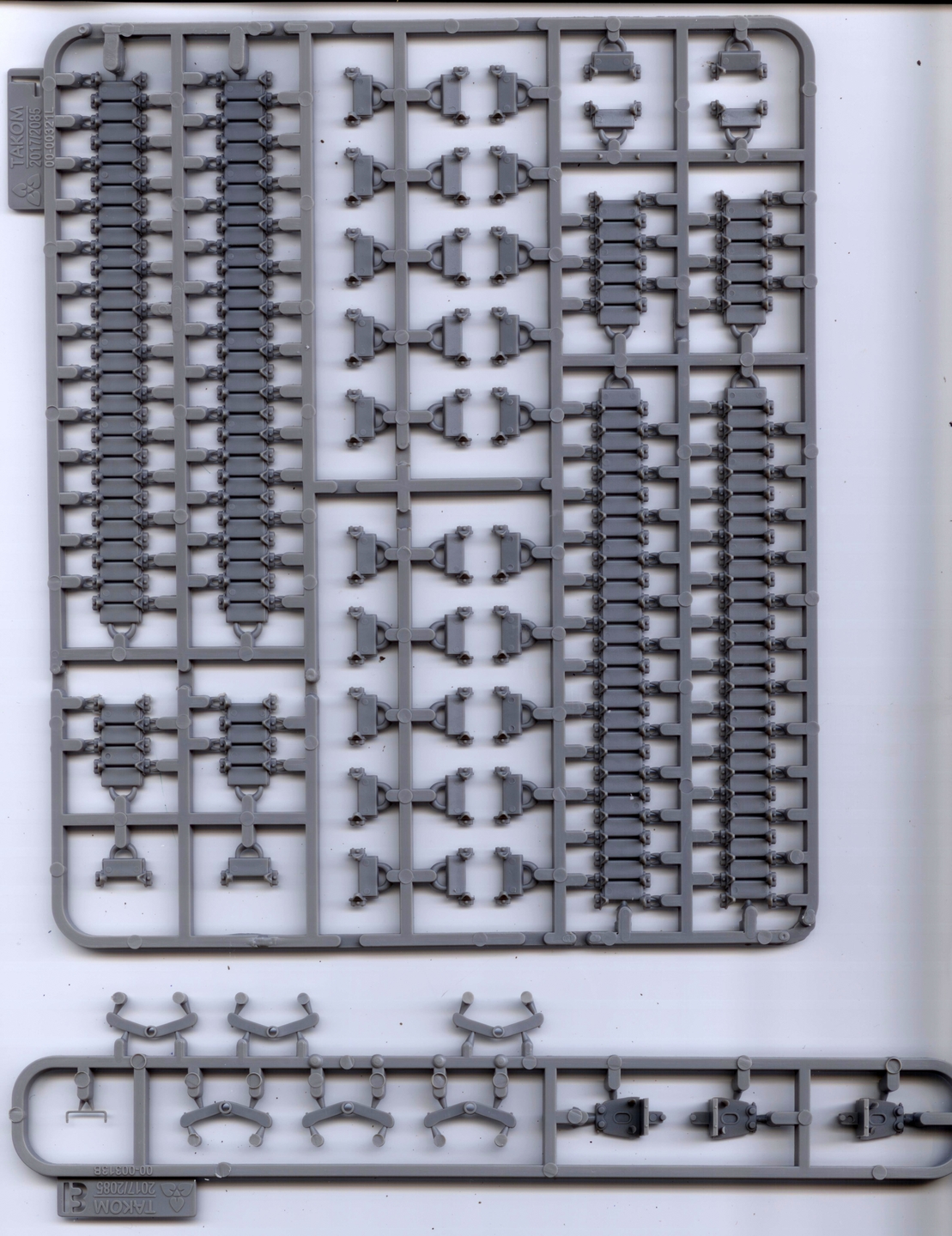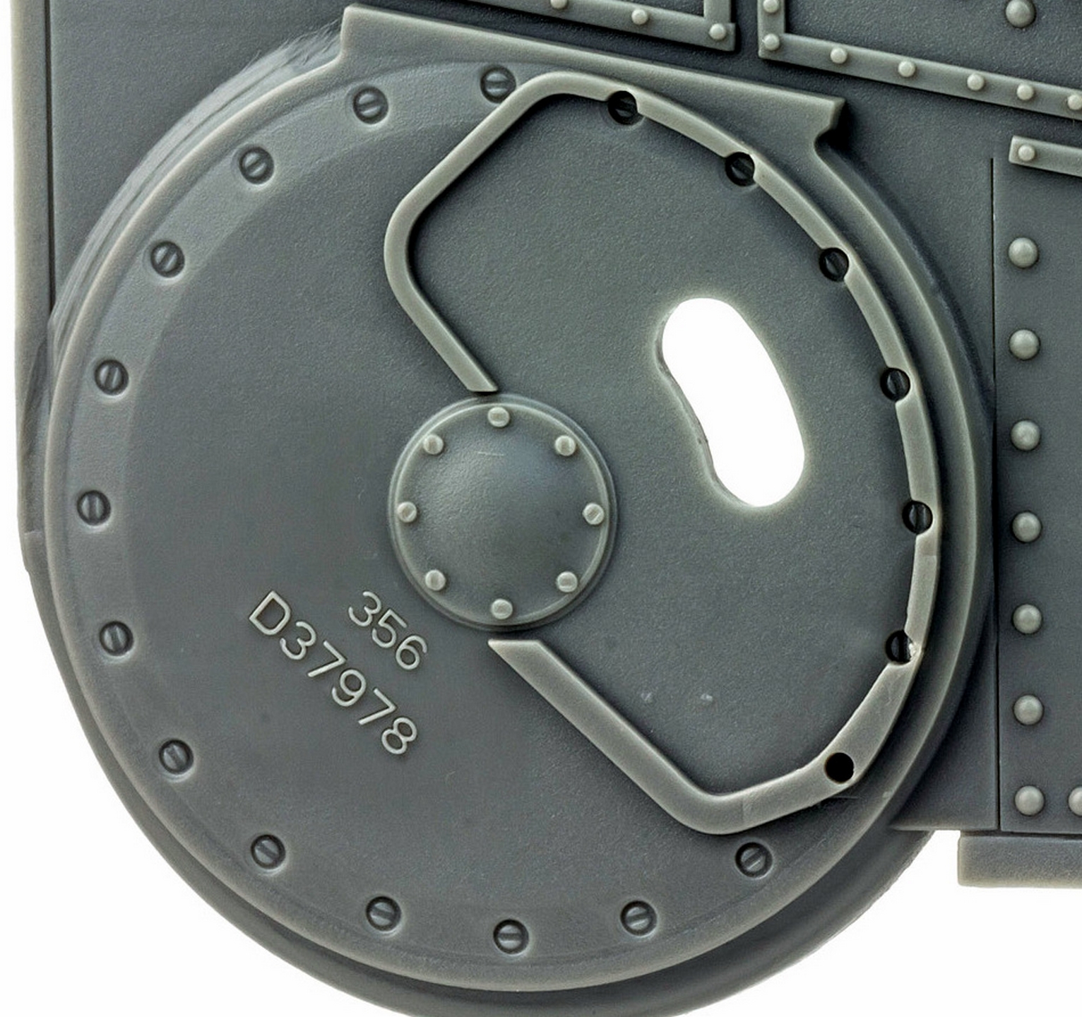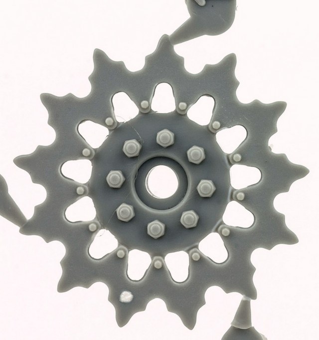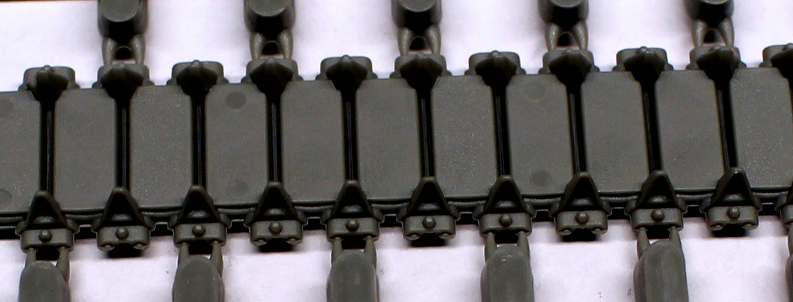 Из недостатков отсутствии прозрачных деталей смотровых приборов, такая крутая модель в плане литья и проработки мелочей, а производитель предлагает пластиковые приборы закрашивать зеленым лаком, это меня несколько удивило. Ну еще попадаются утяжины на запасных траках, следы толкателей на беговой дорожке основных траков, и небольшой литьевой шов на них же.